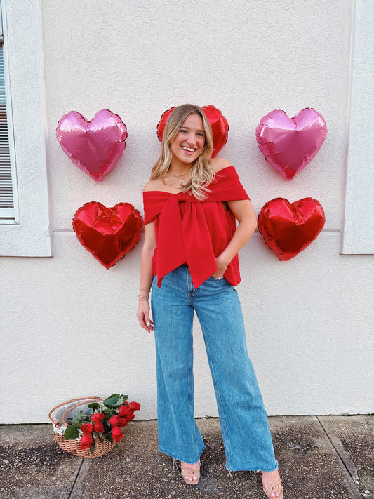 Red Off The Shoulder Bow Top PREORDER *1/2 WEEK RESTOCK*