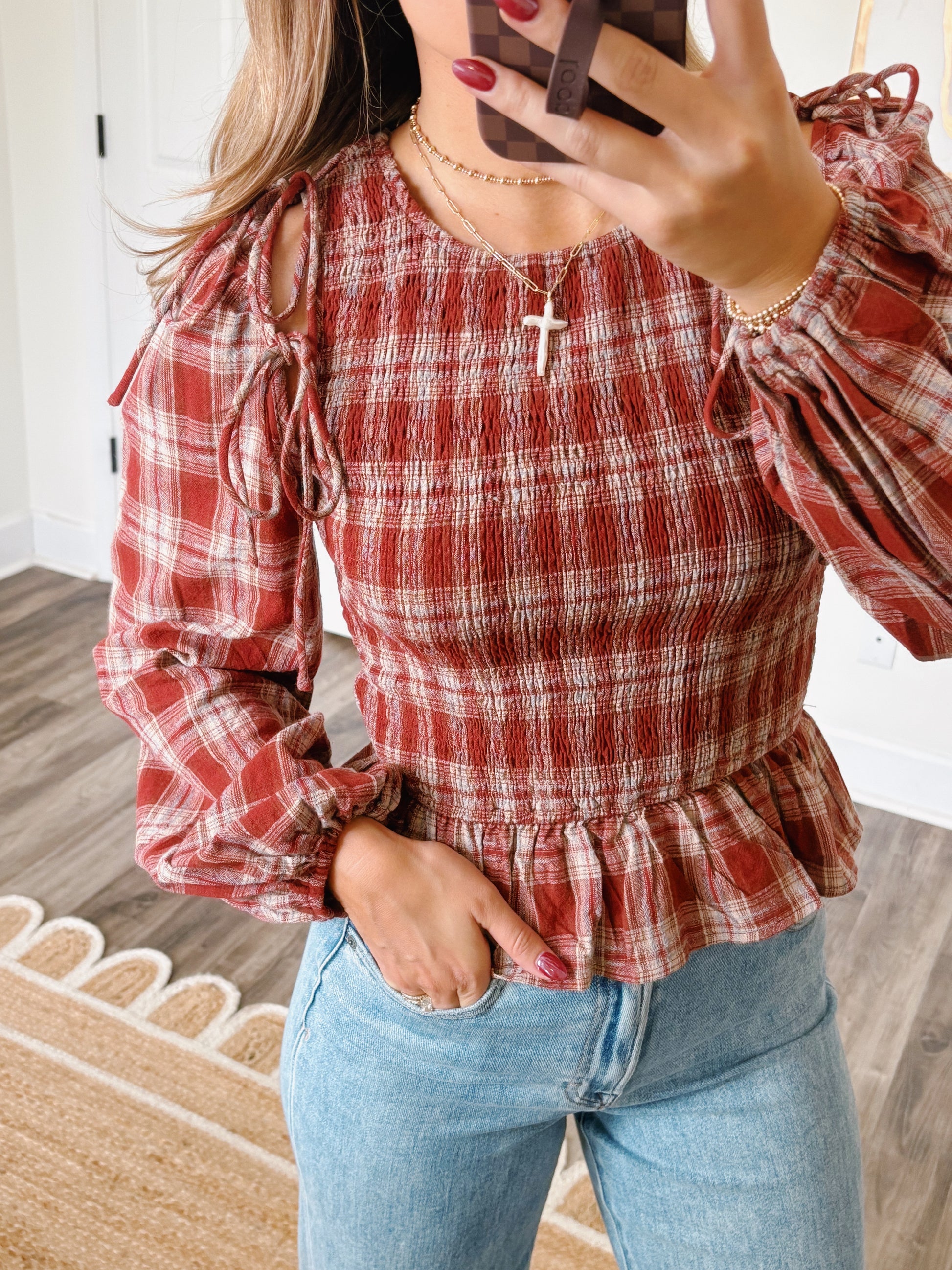 A top we are obsessed with!!! It runs true to size and ties on the top. The model is 5'3 wearing a small.