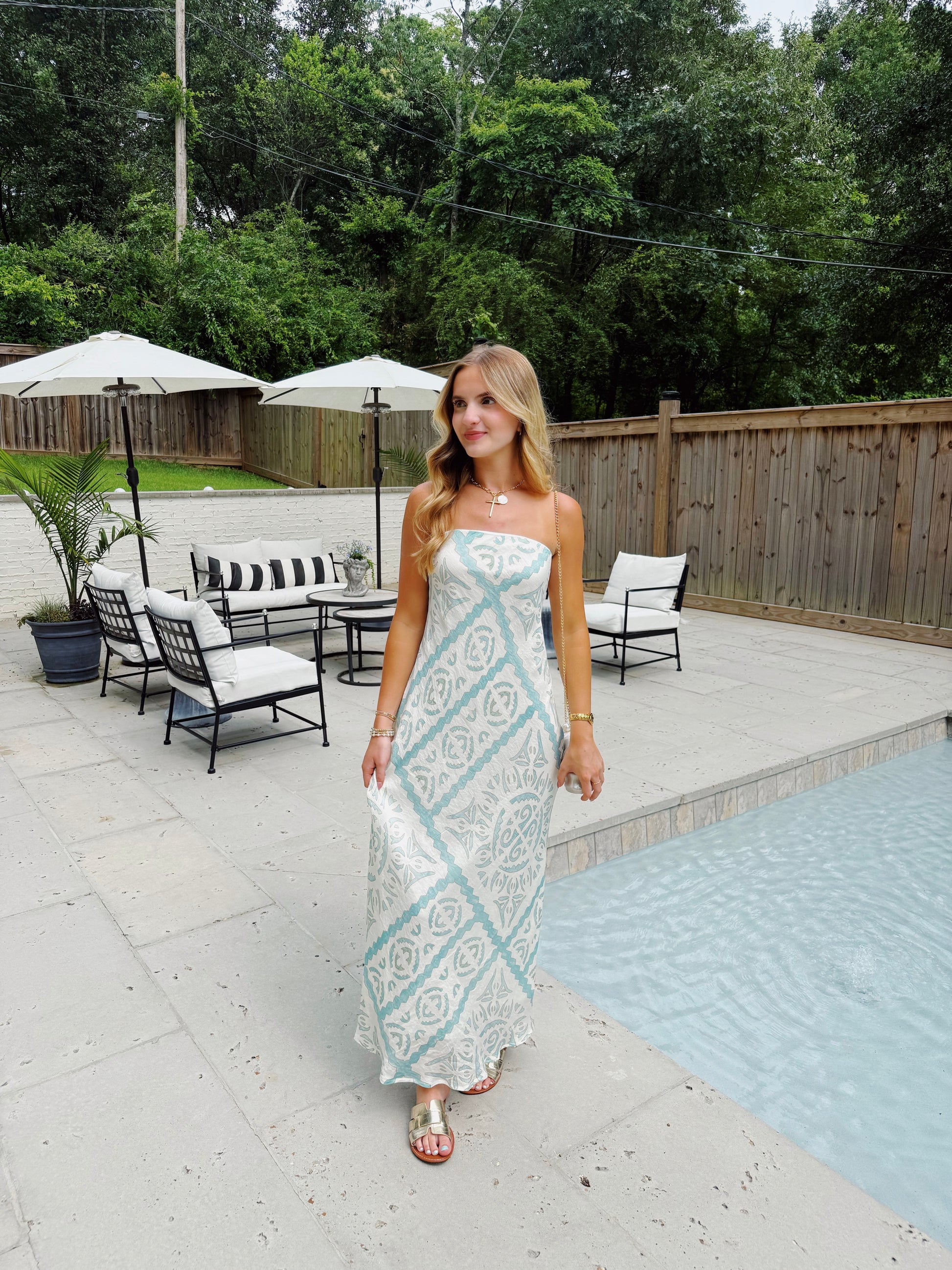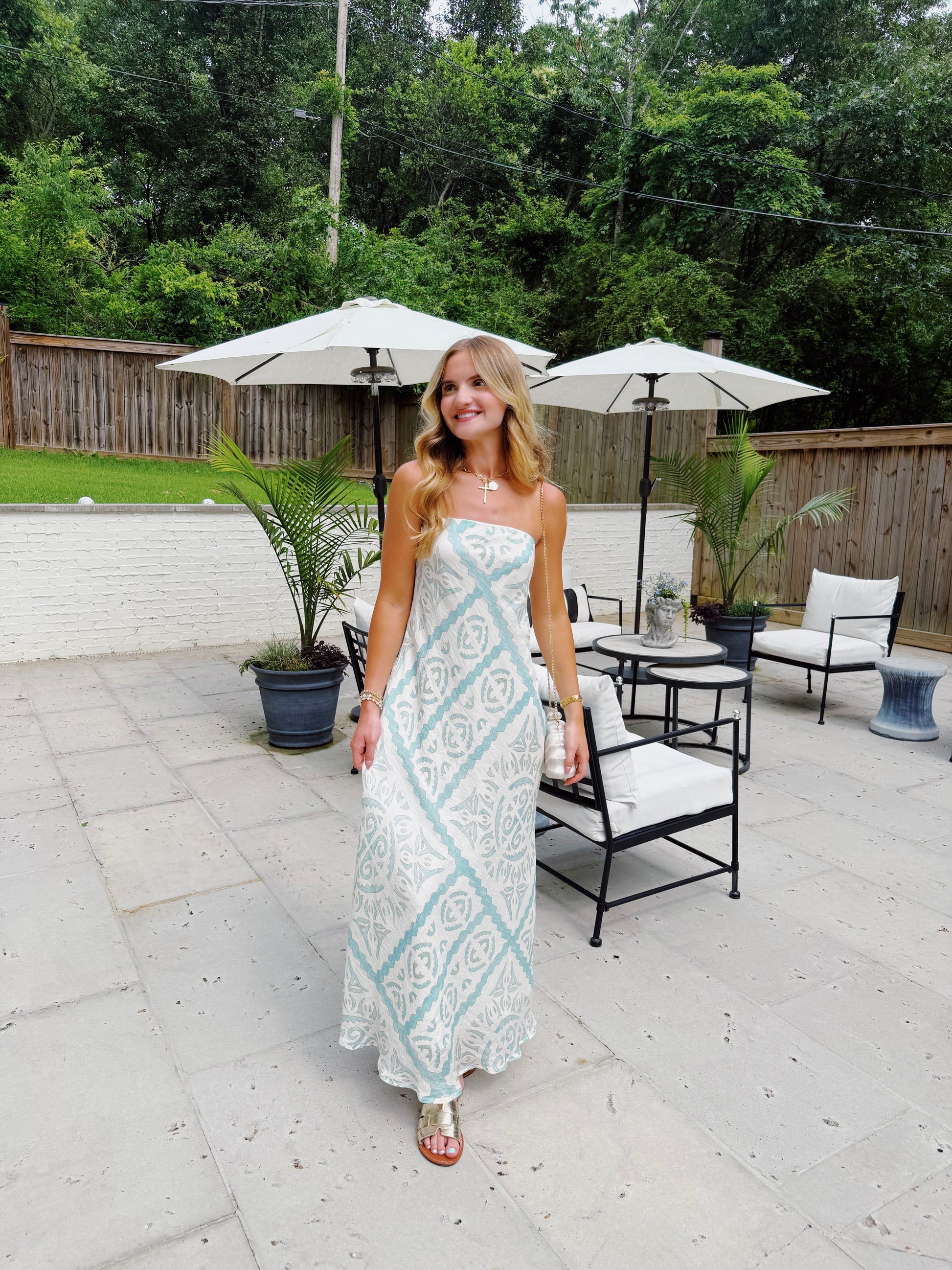 Aqua Abstract Maxi Dress