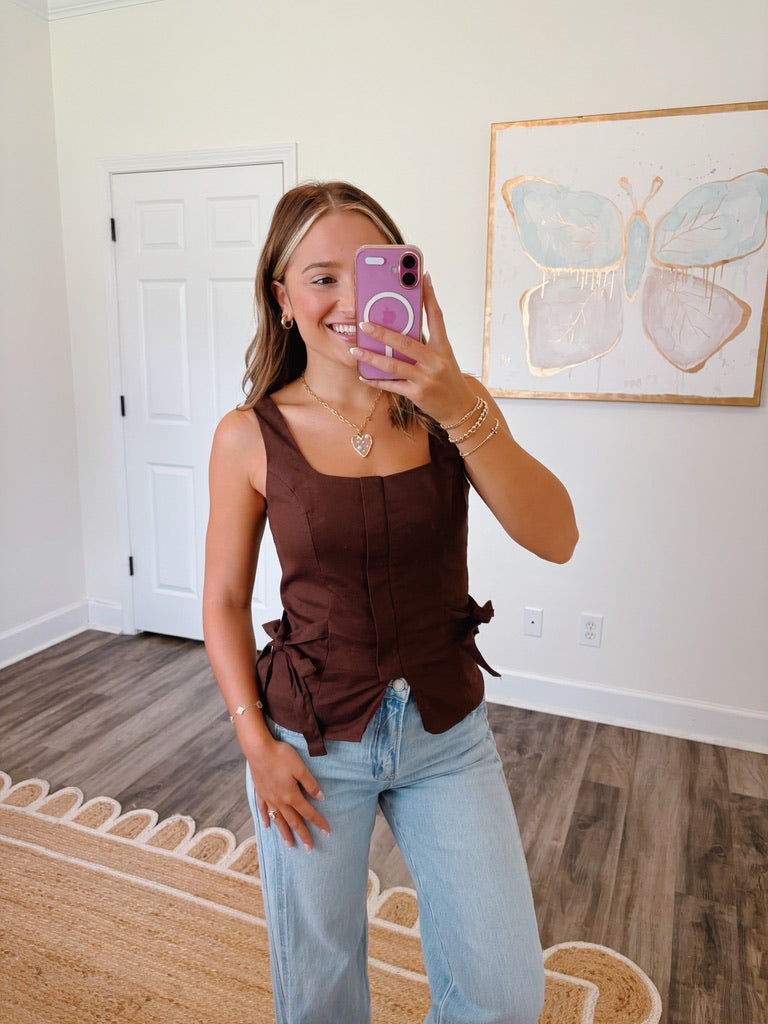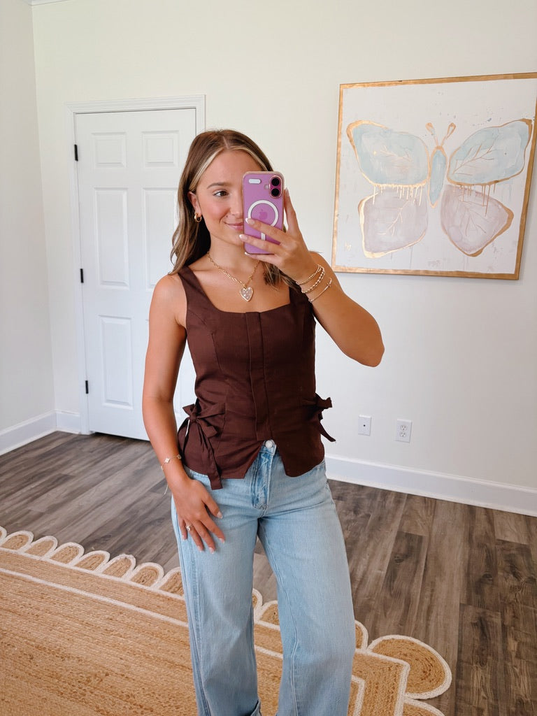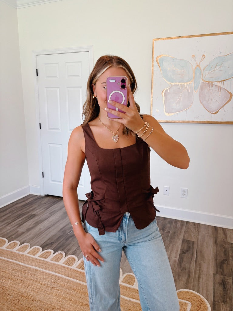 This top runs true to size with a tighter fit! It has a front zipper closure.