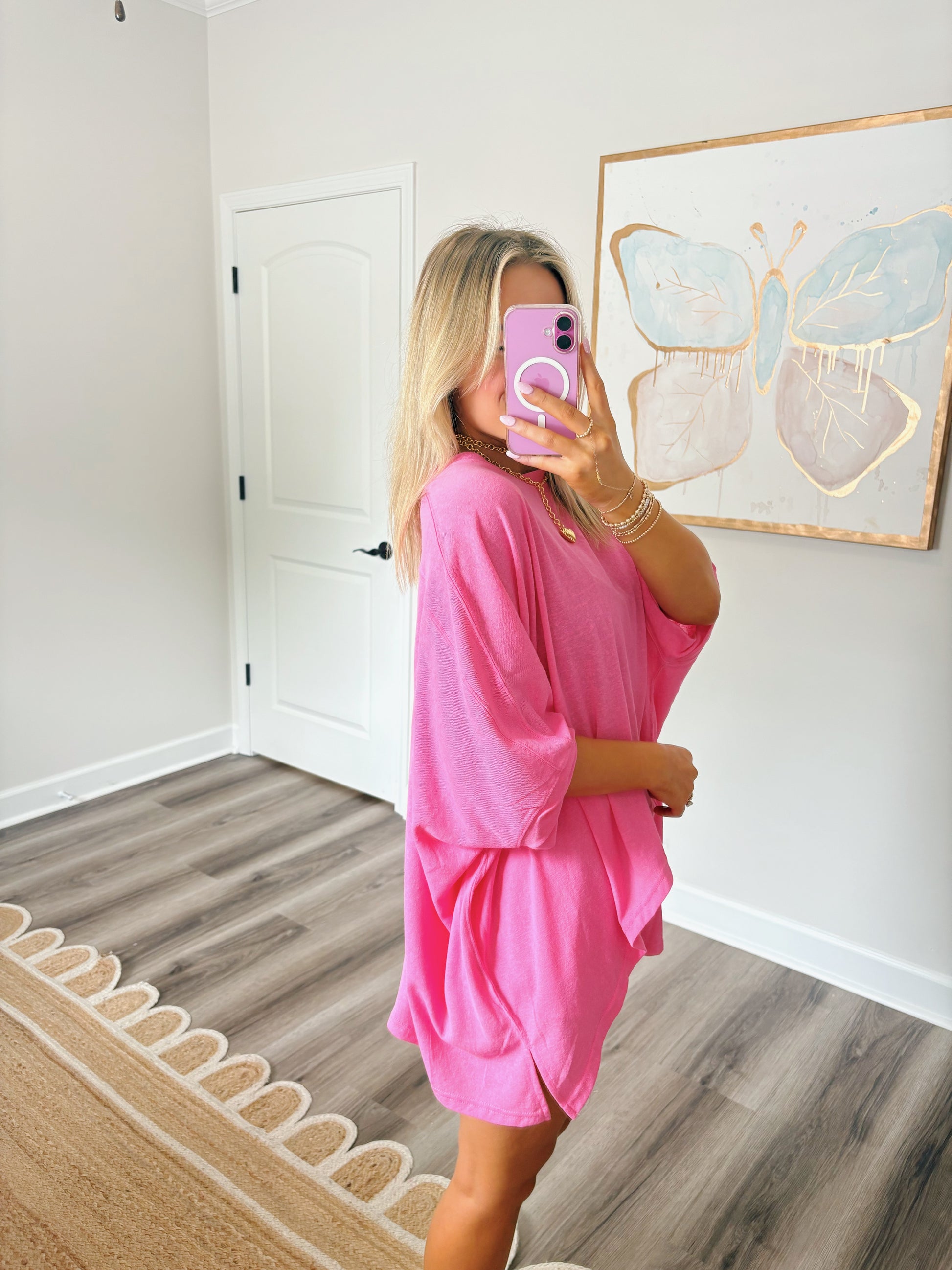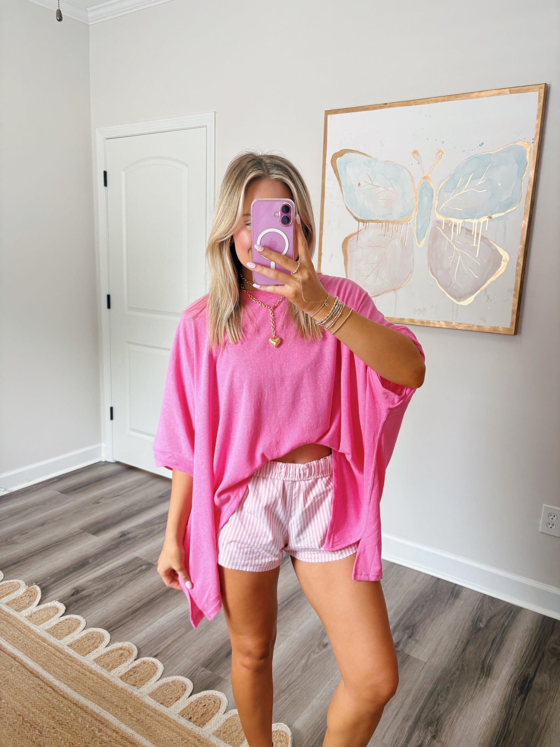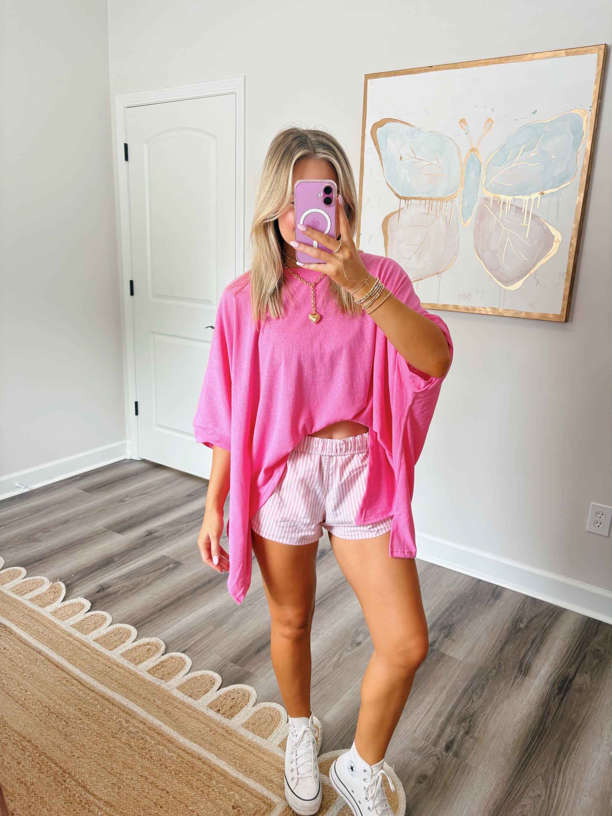 This tee runs VERY oversized and flowy. Perfect dressed up or down! The model is wearing a small for reference. Size down if you are in between sizes.