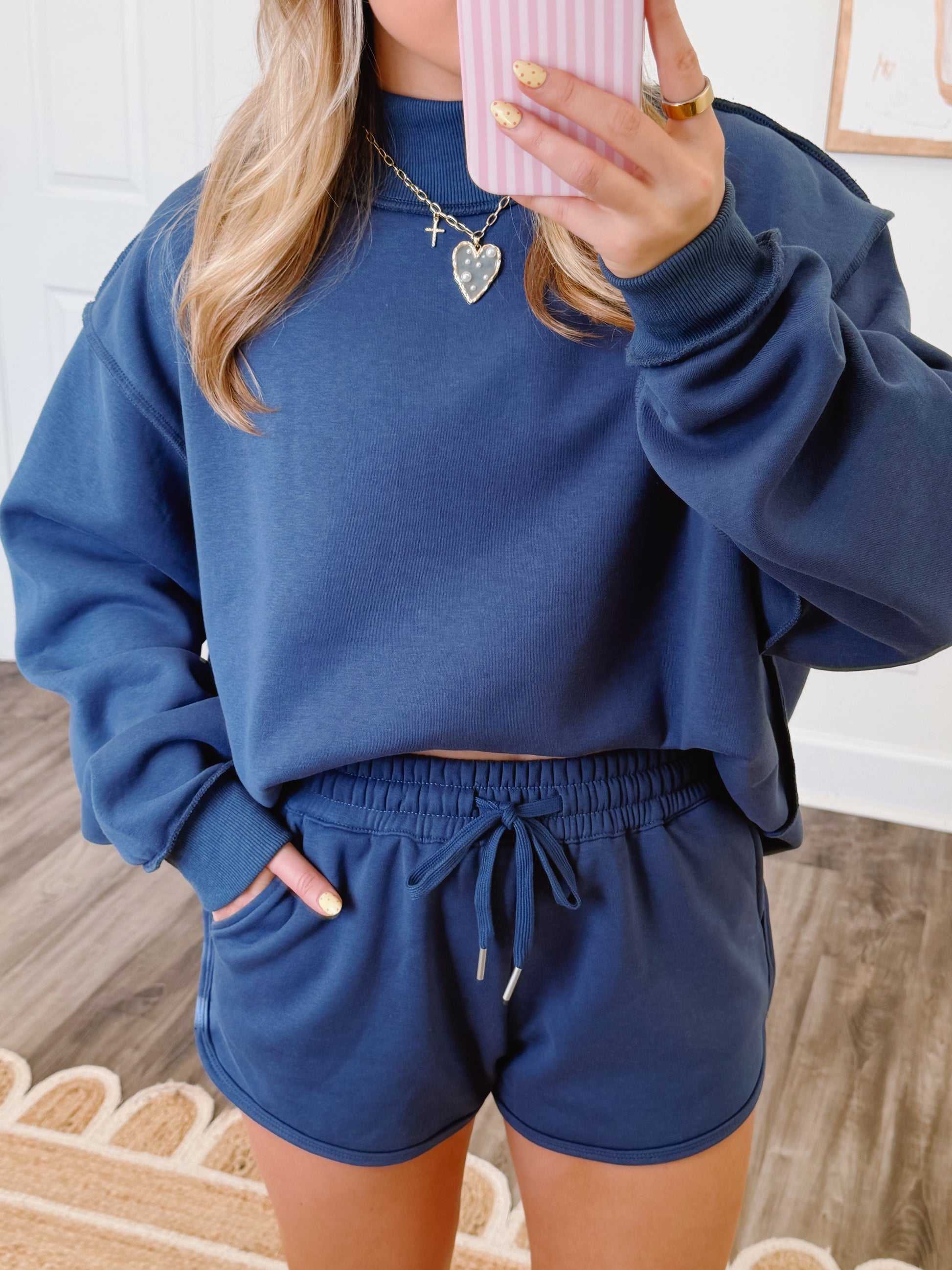 These shorts run true to size with a tighter fit, if in-between sizes, size up on! They have an elastic waistband and the model is 5'3 wearing a small for reference.