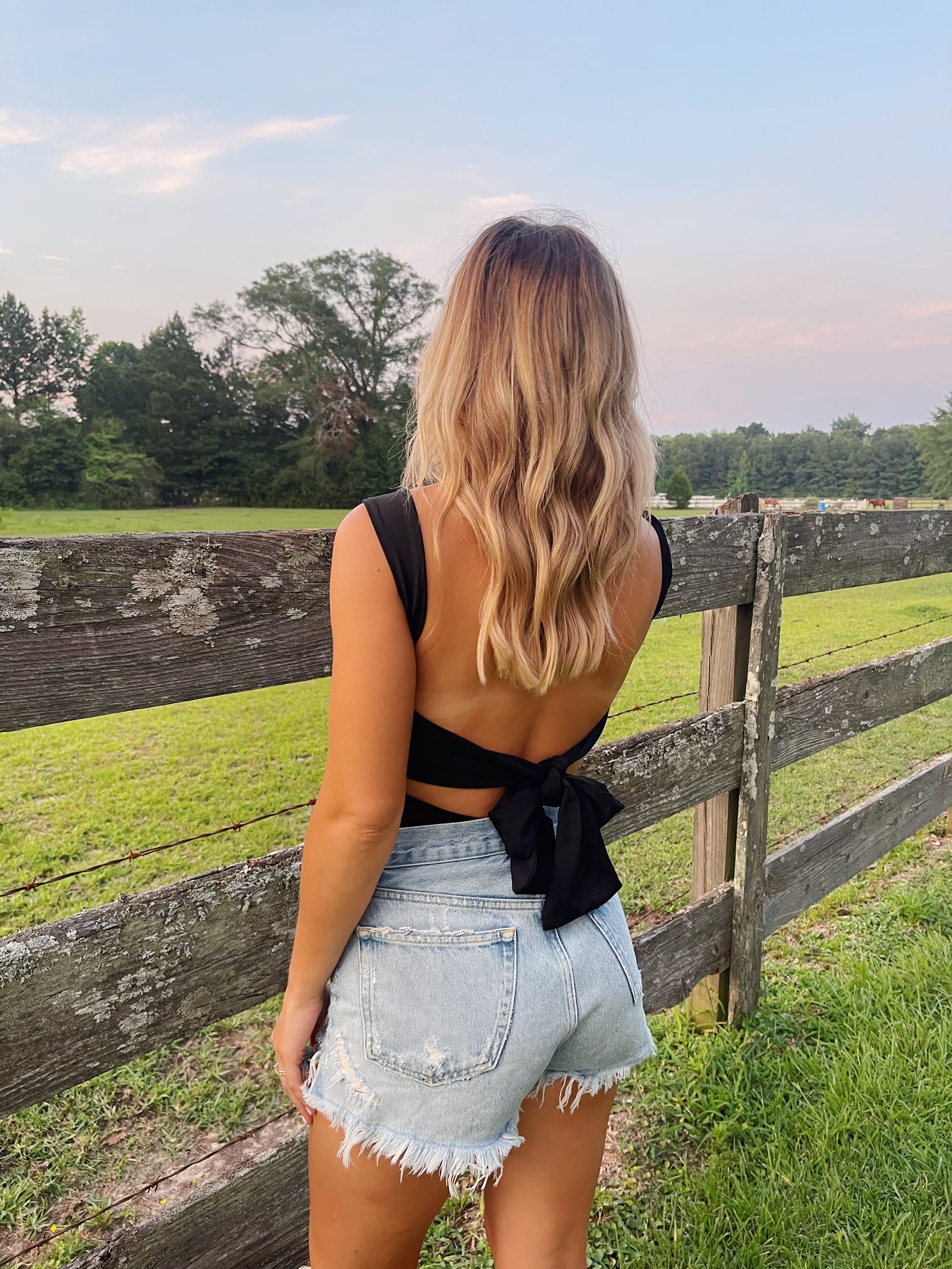 A bodysuit you need in your wardrobe this summer! It is very stretchy and comfy. The model is wearing an XS for reference.