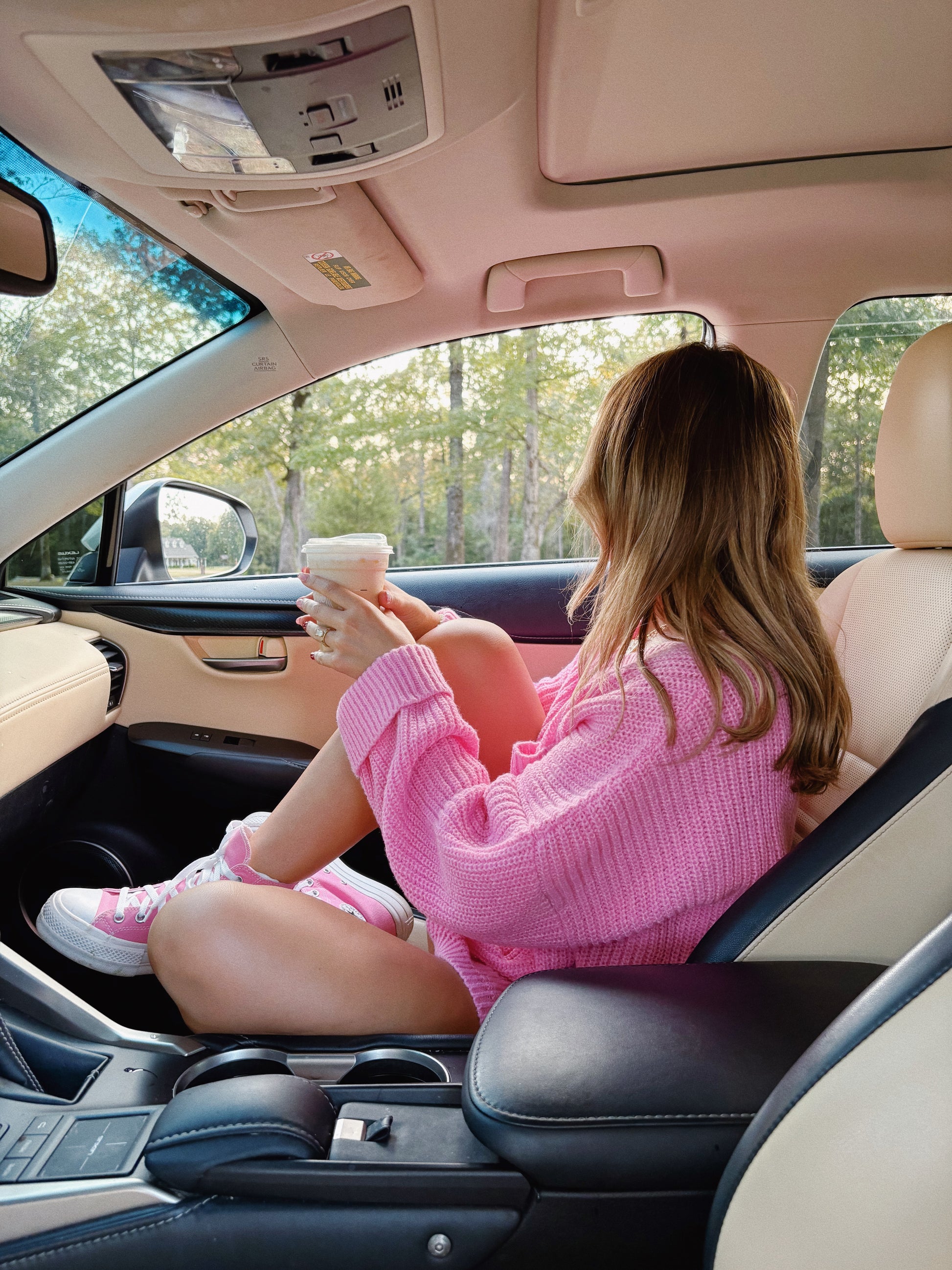 This sweater is a ribbed knit material. It has a front pocket, and the sleeves are folded. It is perfect to throw on for any day! It runs oversized. The model is wearing a small.