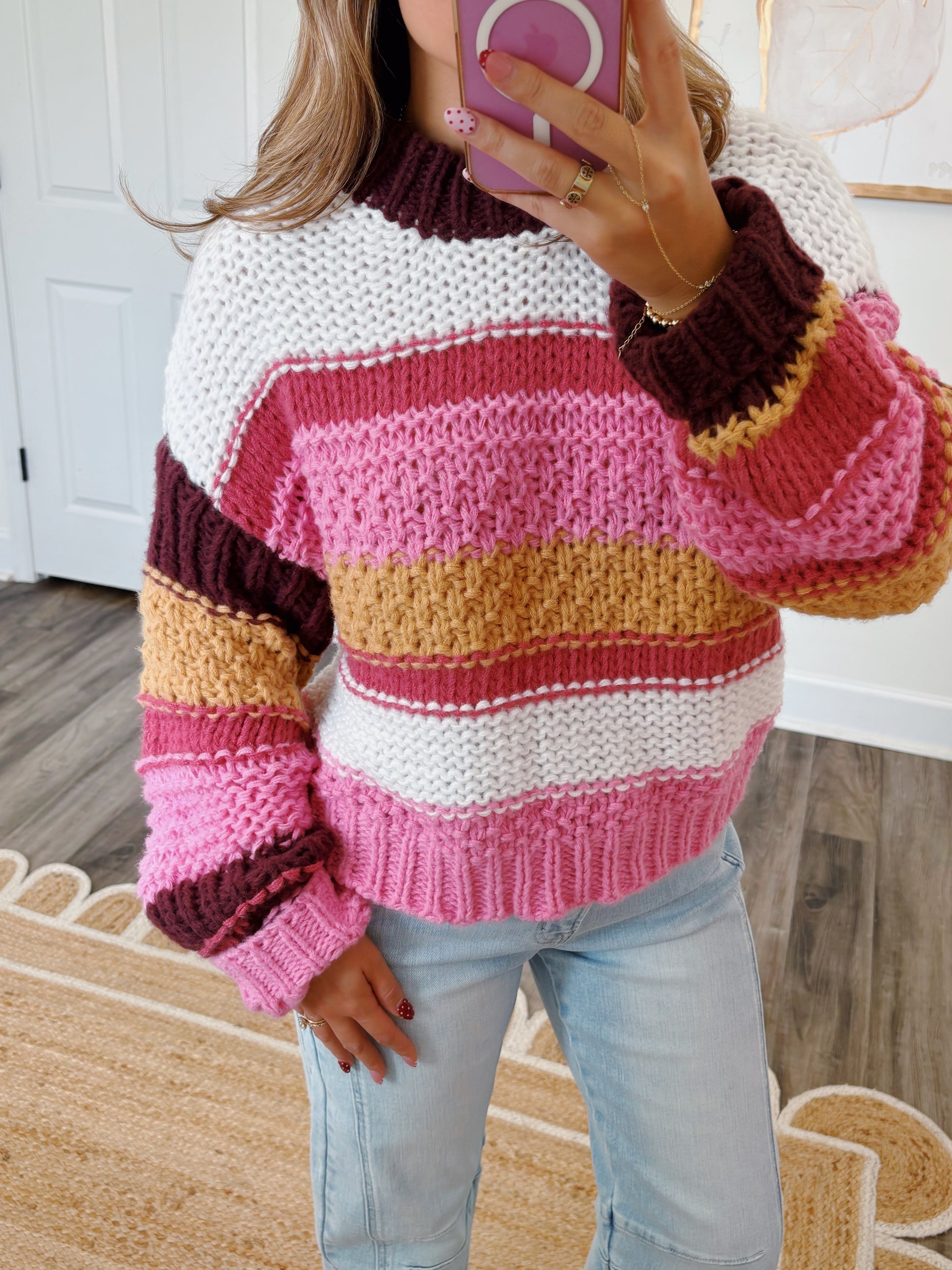 The perfect pop of color for your fall wardrobe! This sweater runs true to size. The model is wearing a small.