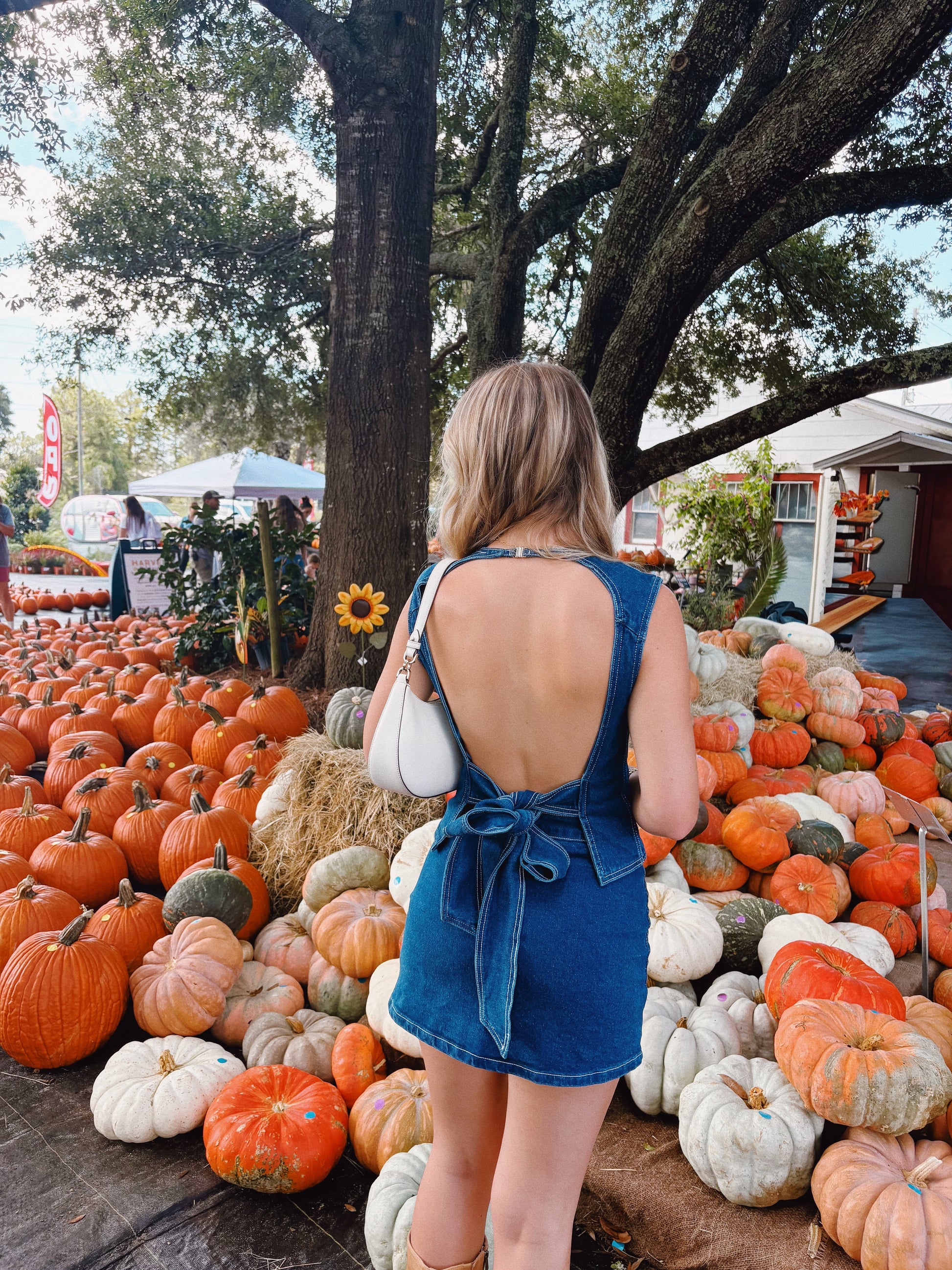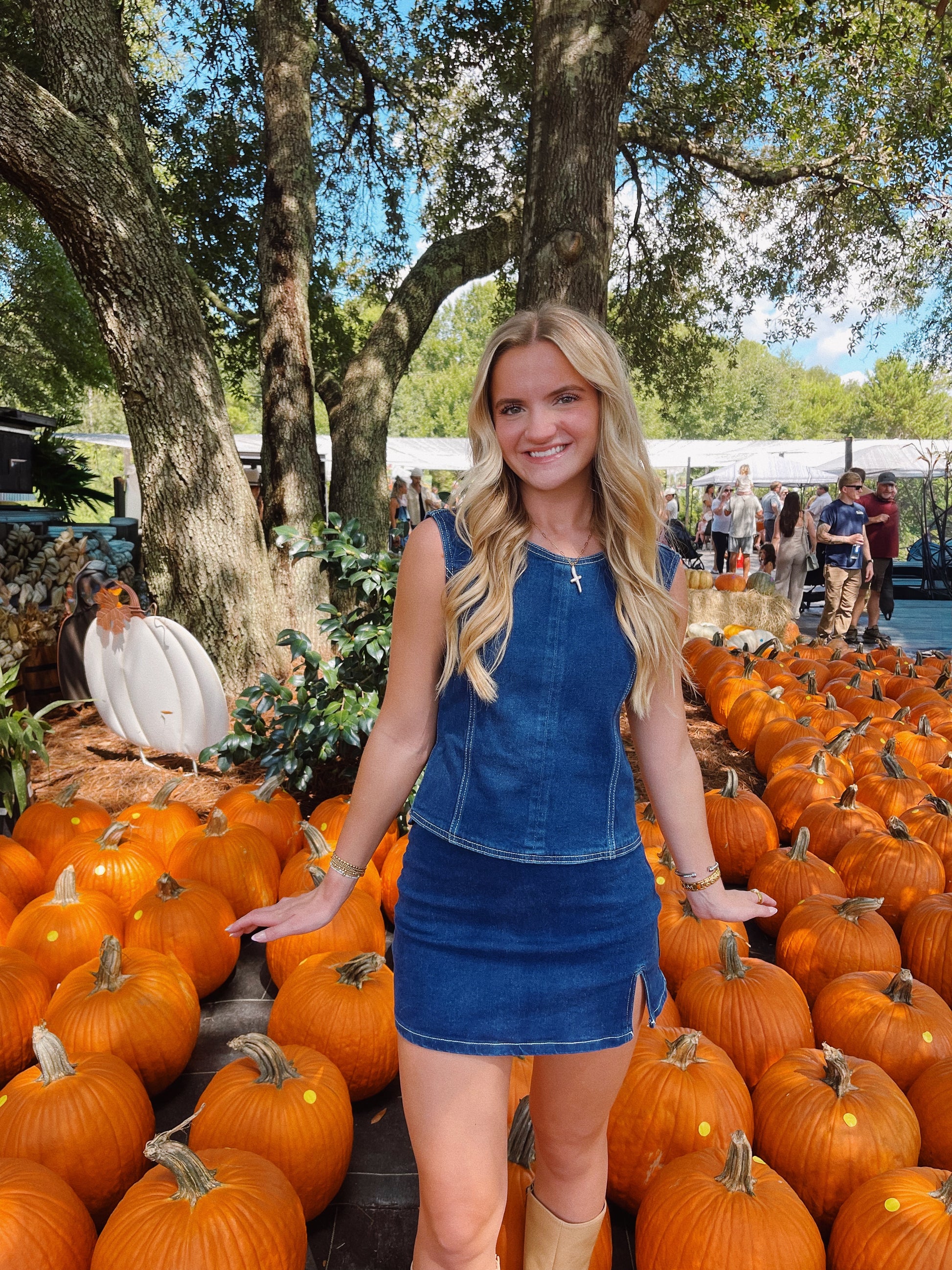 This set is perfect for all your fall festivities! The top is an open back, and the skirt has side slit. It runs true to size with a fitted look!
