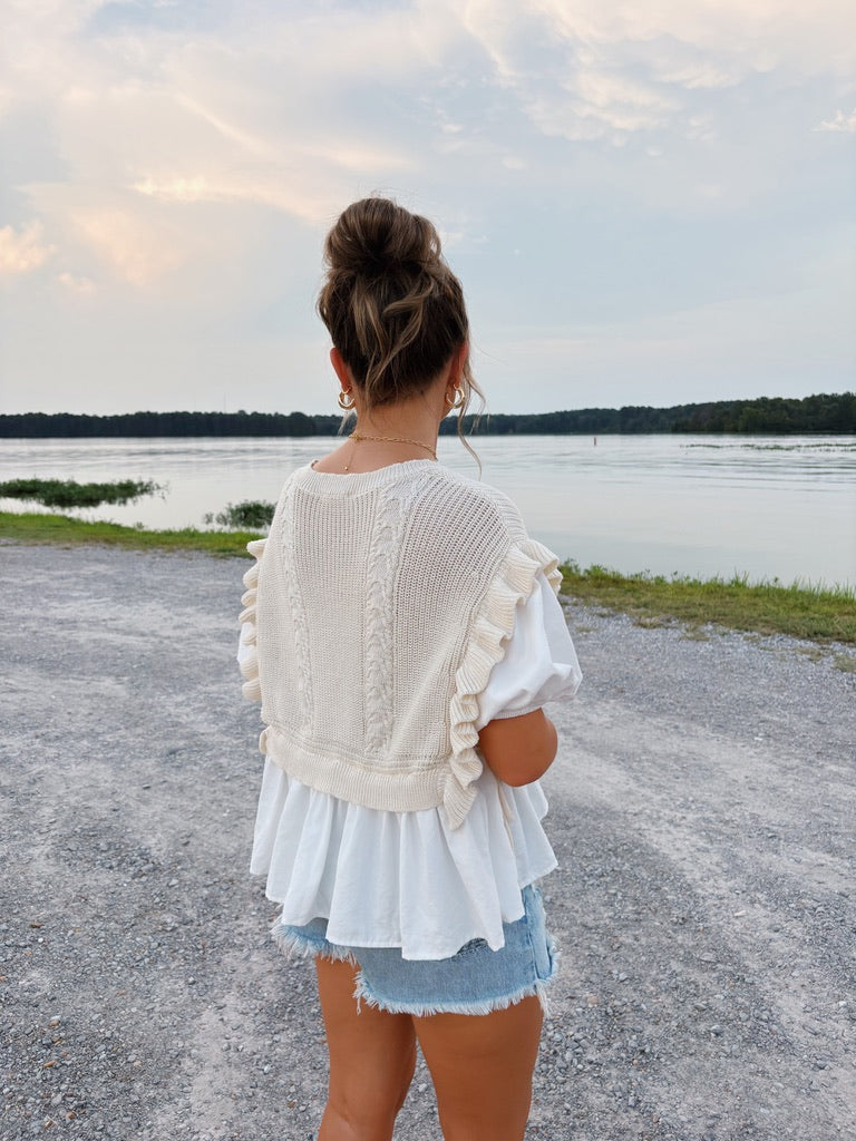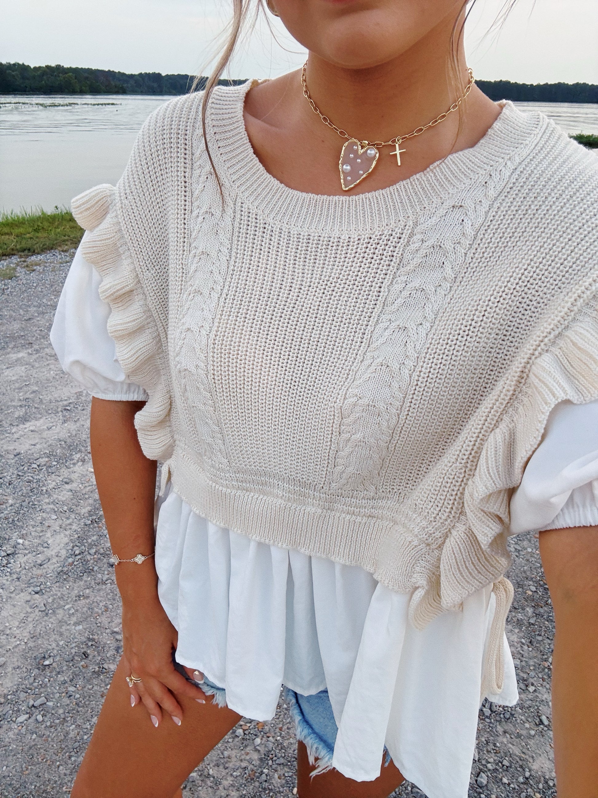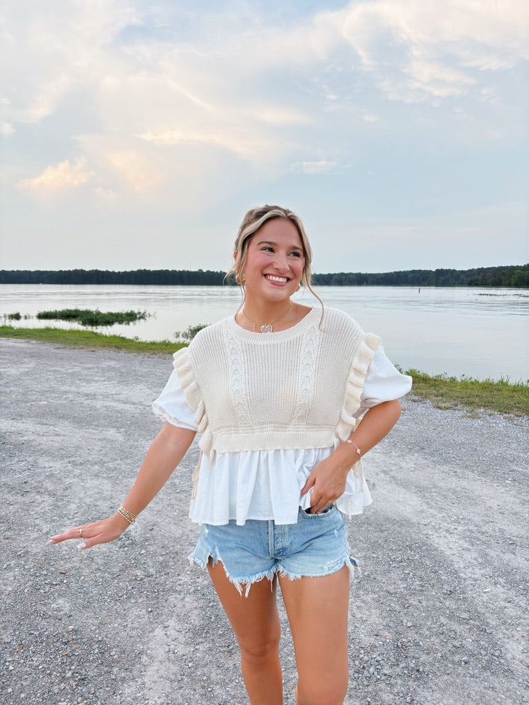 This top is precious for fall! Perfect with jeans or shorts. It runs true to size with a slightly oversized fit.