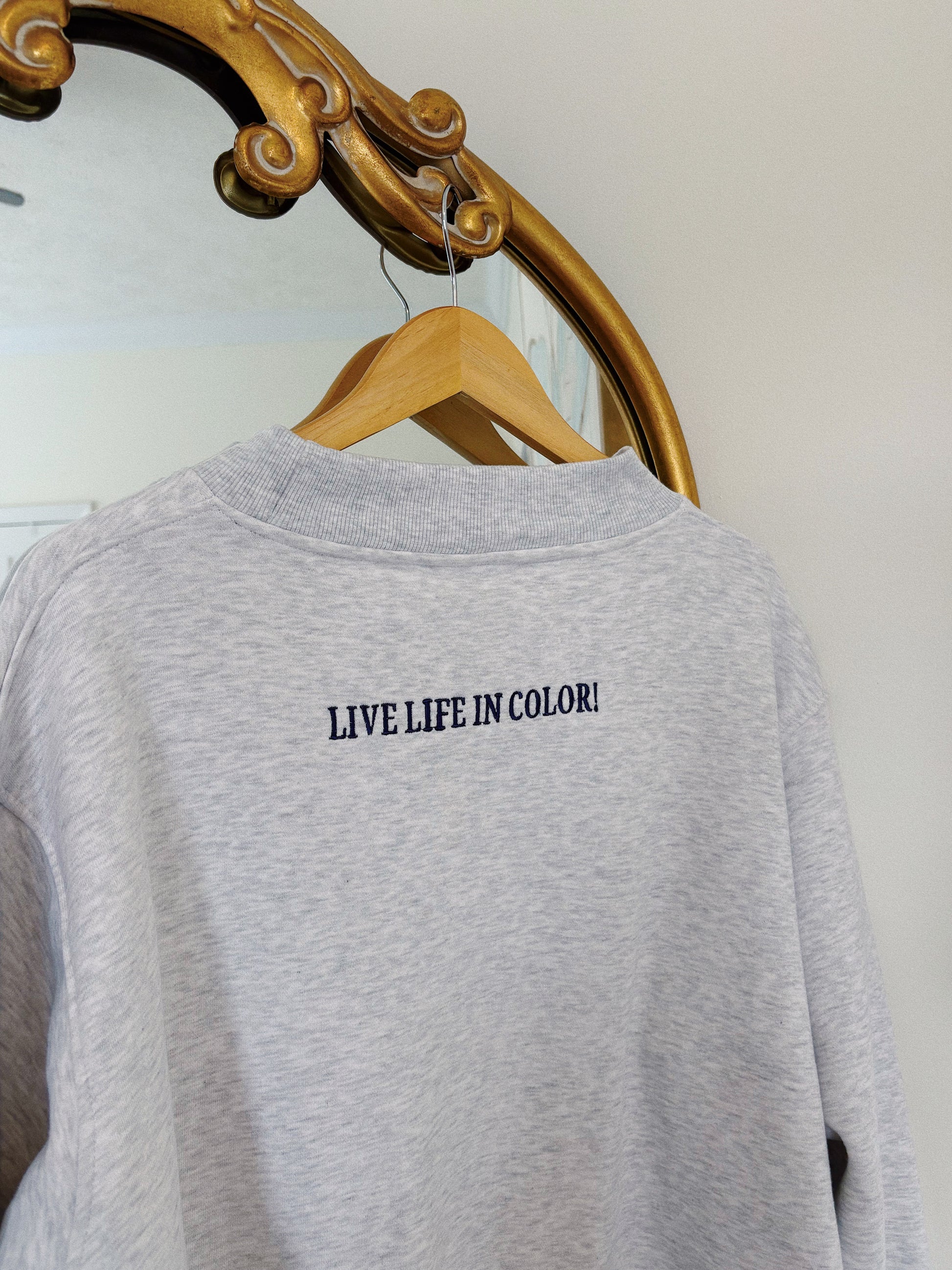 This mockneck is perfect to pair with our Navy Biker Shorts! It has a white patch on the sleeve that says, "Walk by faith, not by sight"- a biblical truth to remember on the daily! The mockneck has a fleece lining—the materials consist of 65% Cotton and 35% Polyester. Size up one for a more oversized fit! The model is wearing a large for reference.