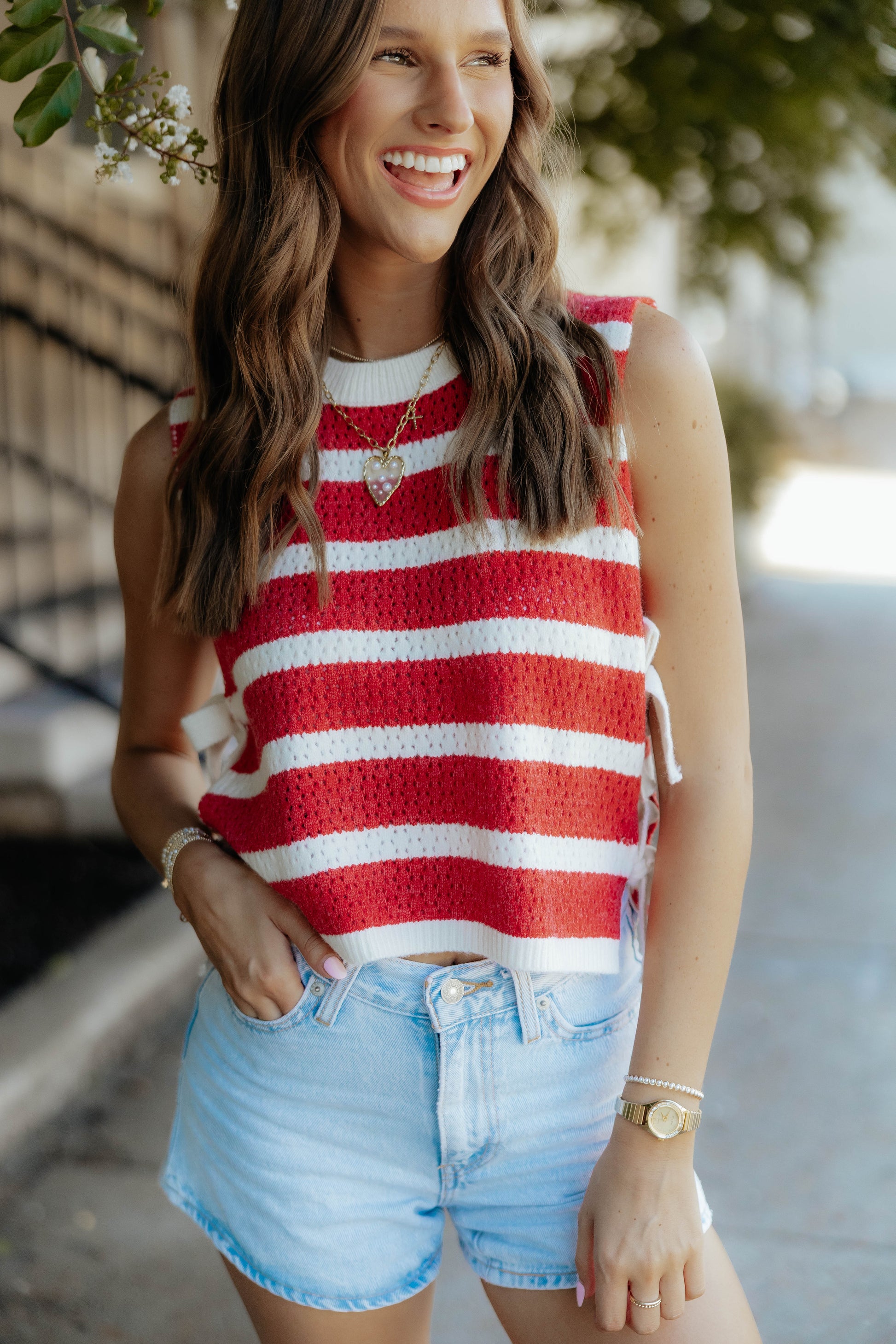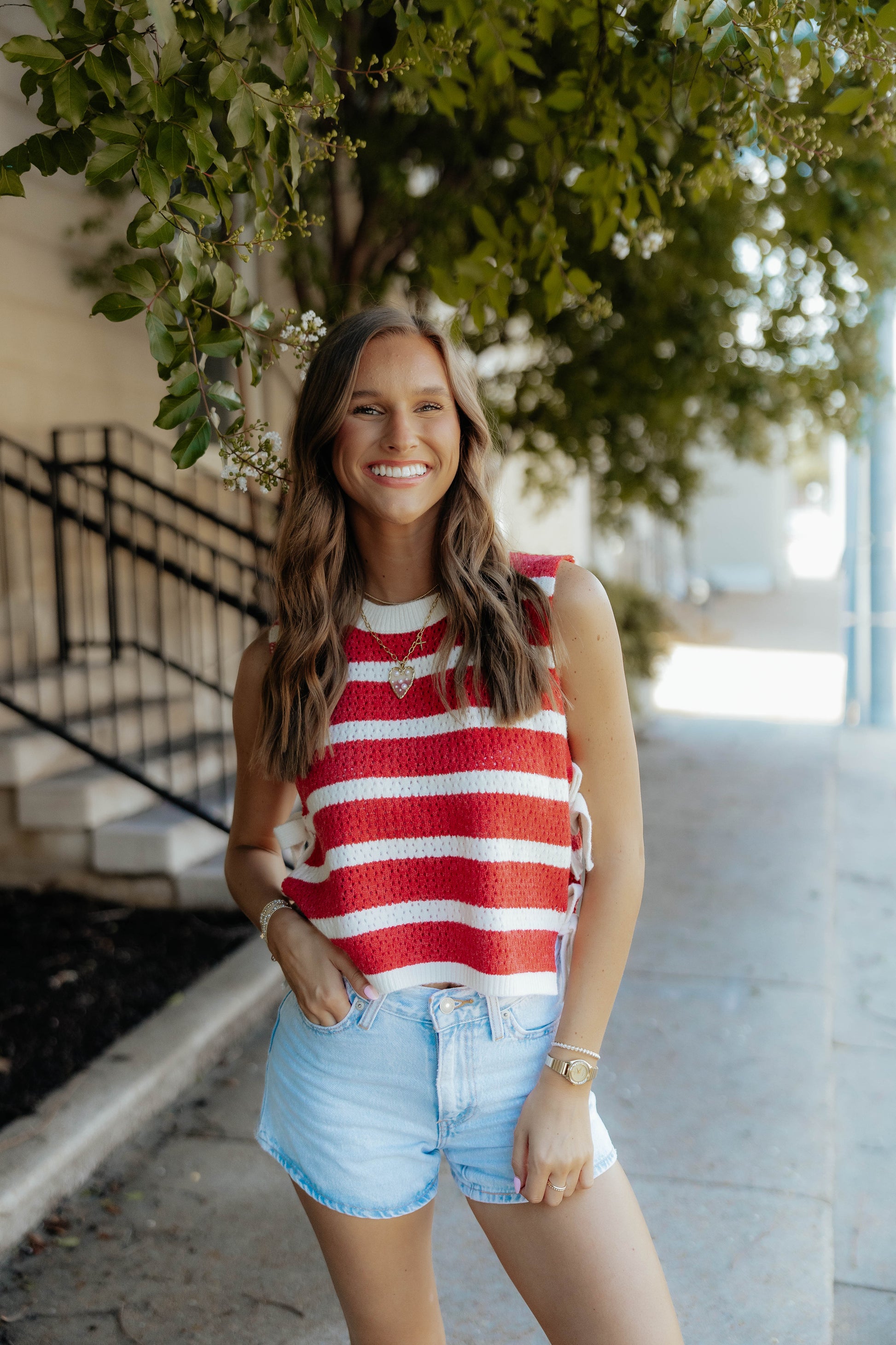 With the cutest side ties, this sweater is perfect for all year round!! It runs true to size. Anna is wearing a small.