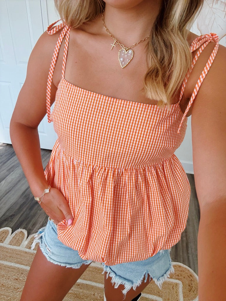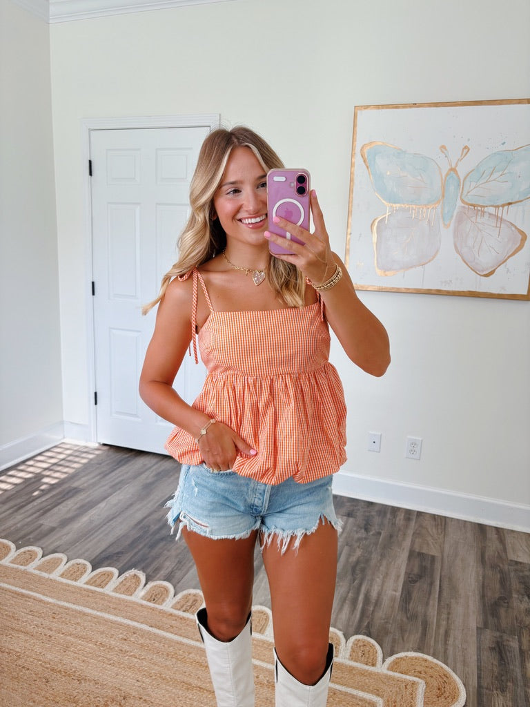 This cutie tie top runs true to size! Perfect paired with jeans or shorts.