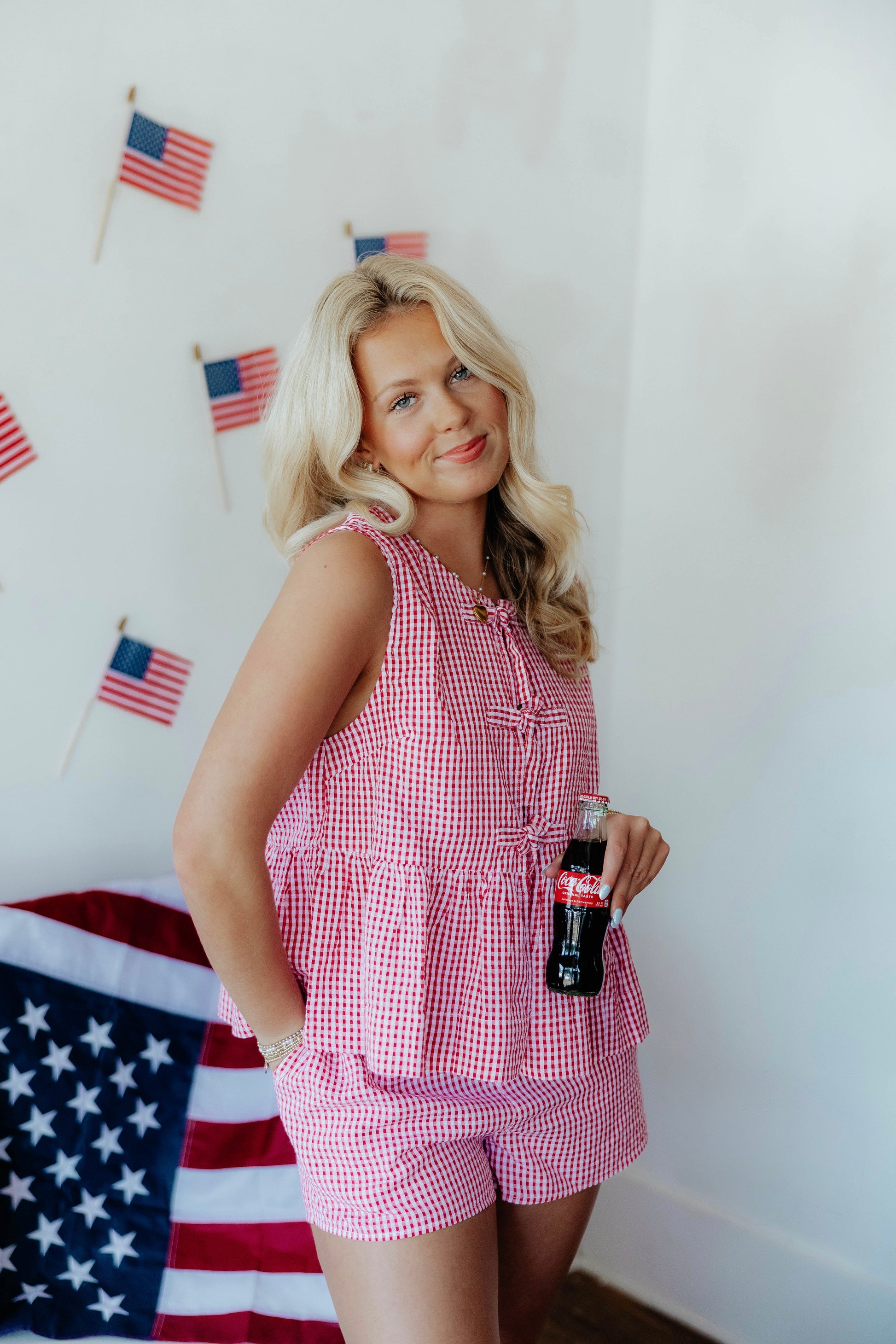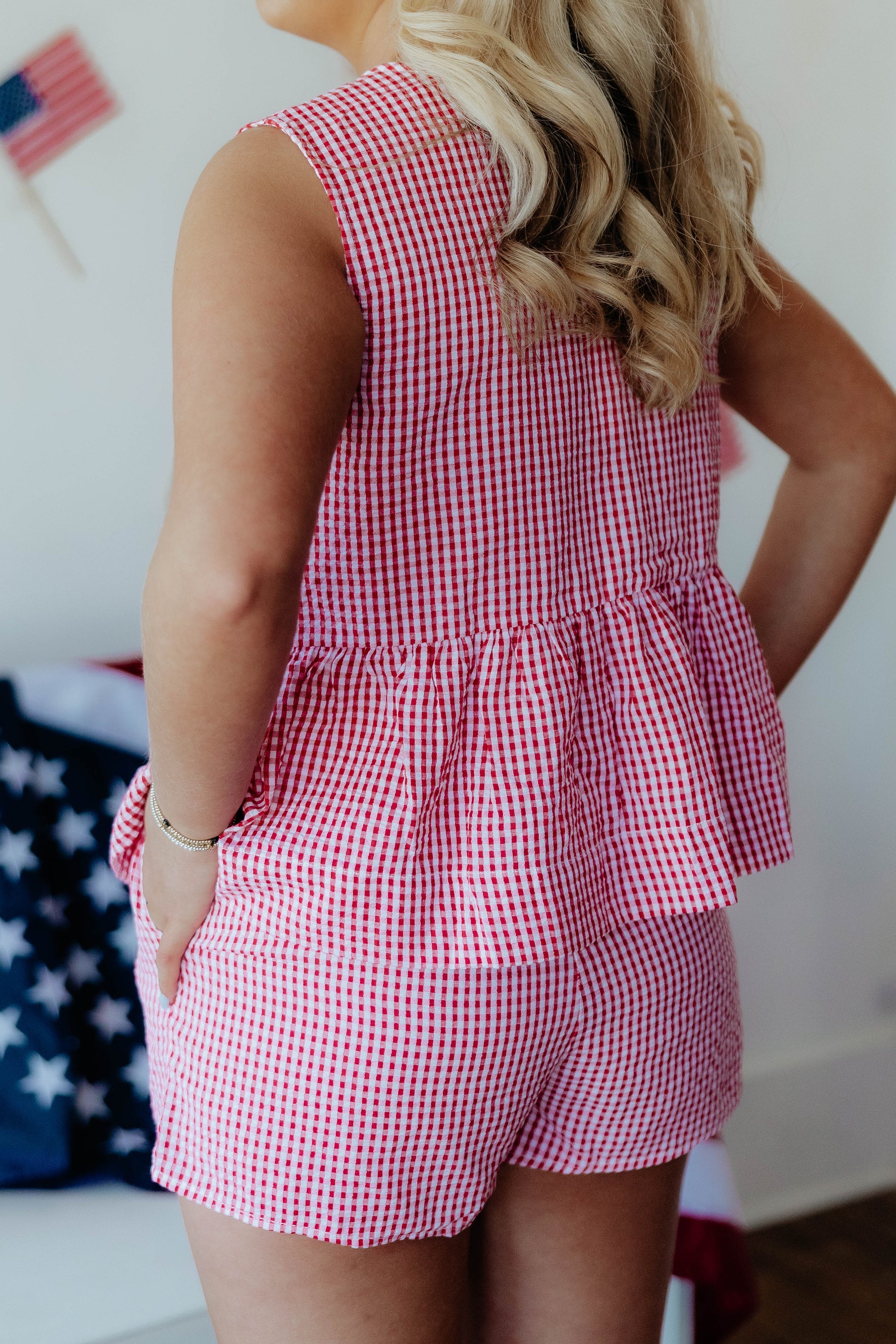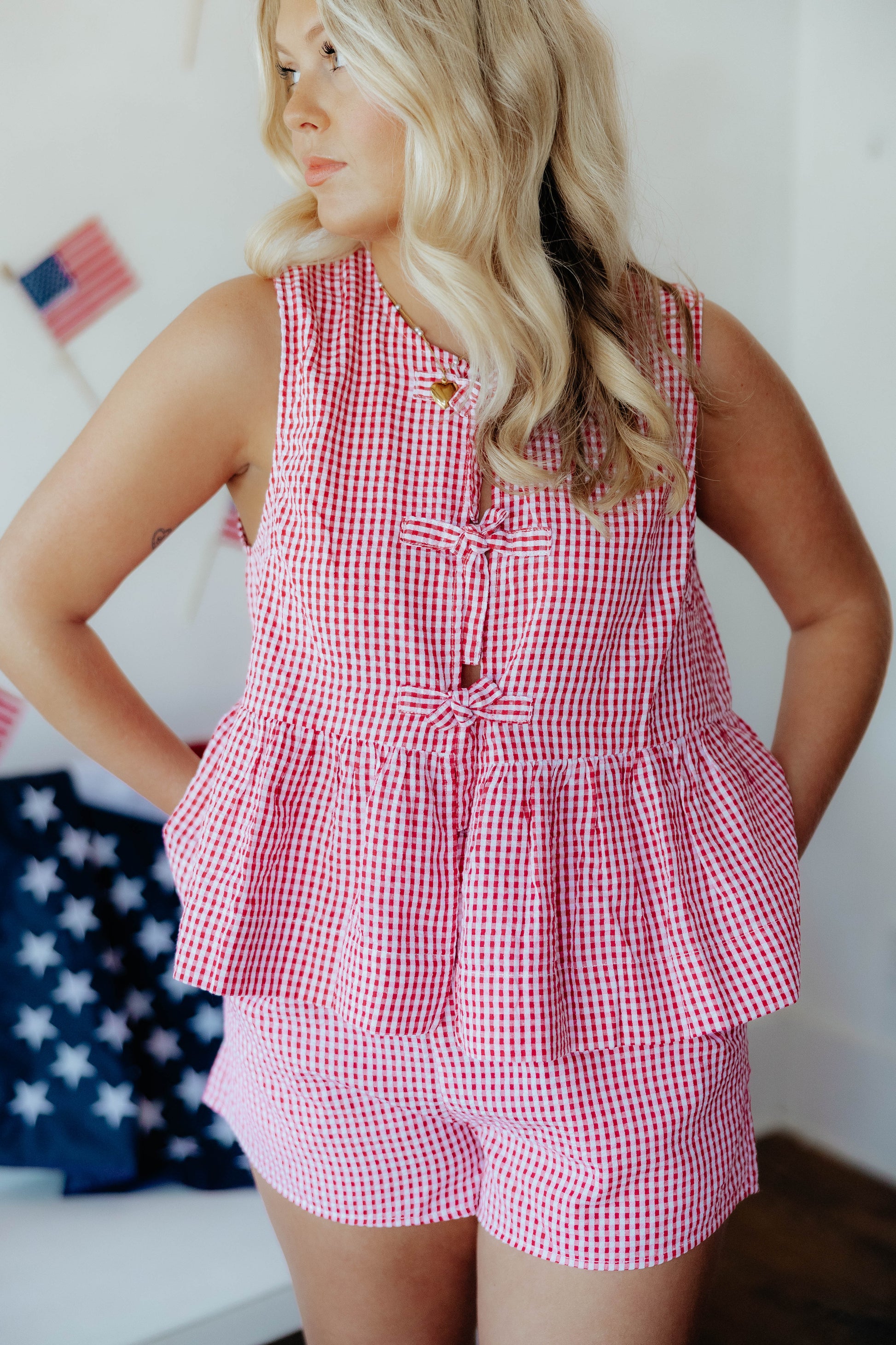 We are loving this set!! Mix-match the shorts with a white tee or the top with jean shorts!! It runs true to size, and Wiselee is wearing a medium.