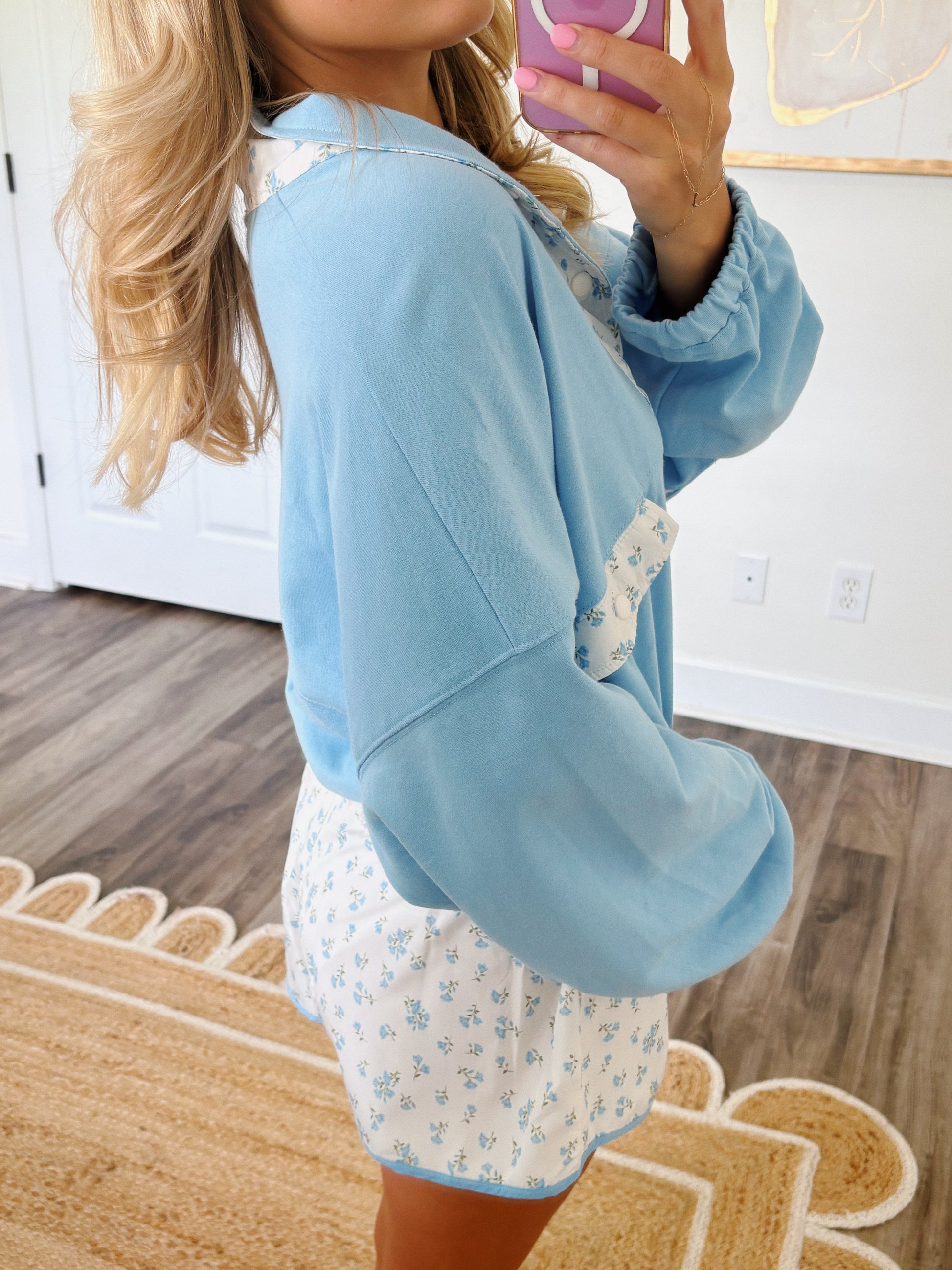 The perfect pullover for this season! They run true to size, and Hallie is wearing a small. Pair them with our "Ditsy Flower Printed Shorts" for a matching moment!!