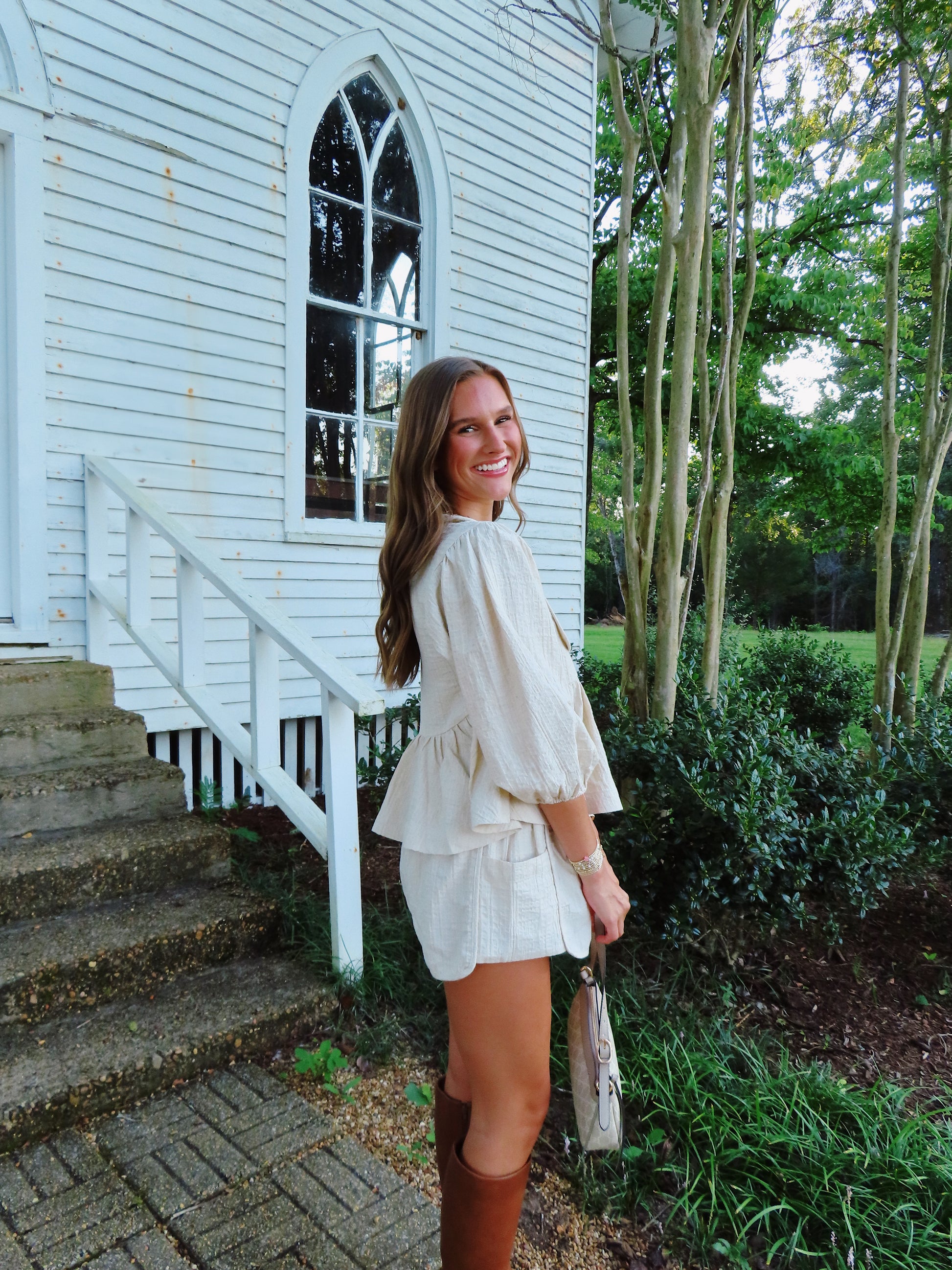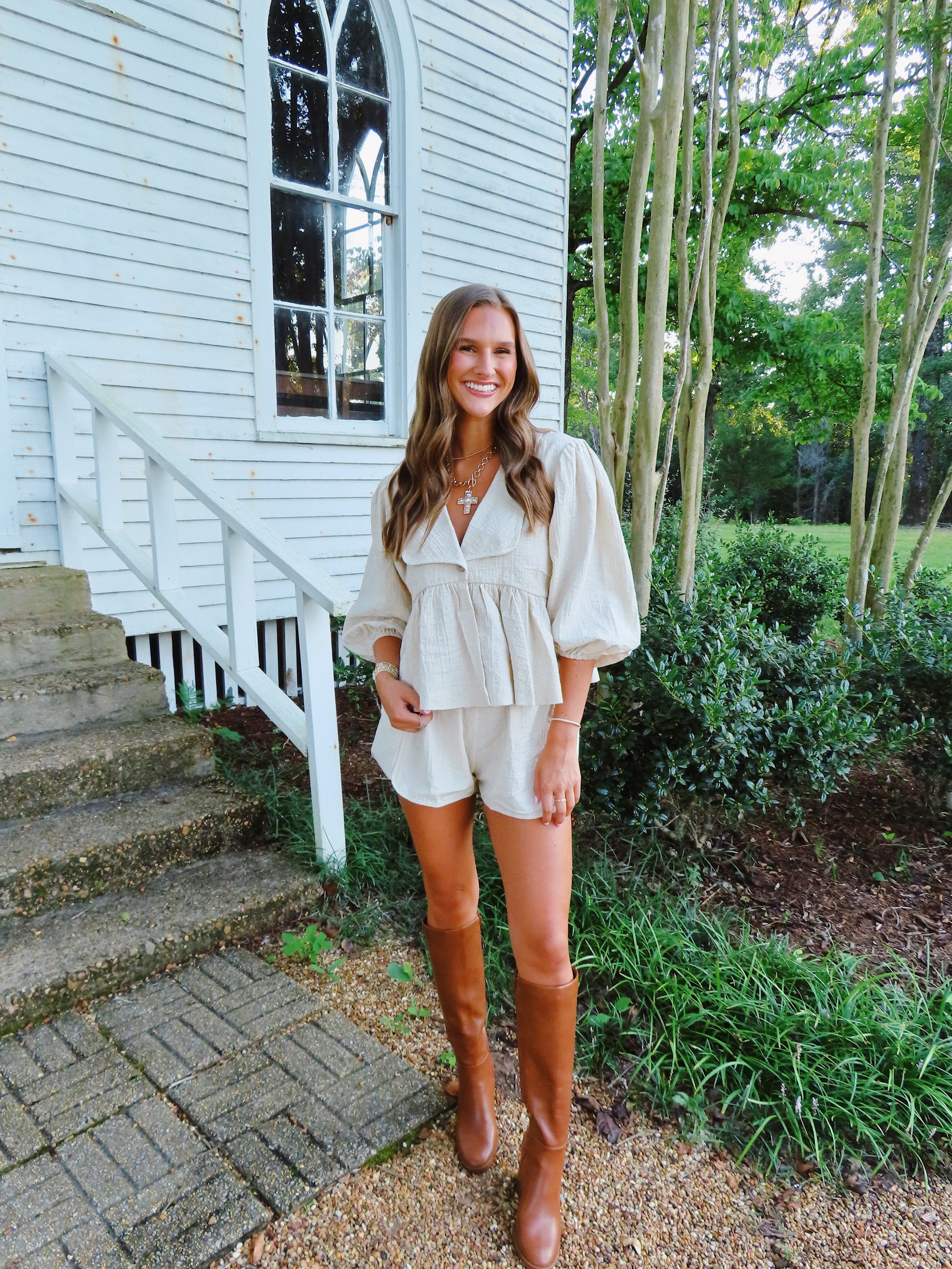We can't get enough of this set! It runs true to size, and Anna is wearing a small.