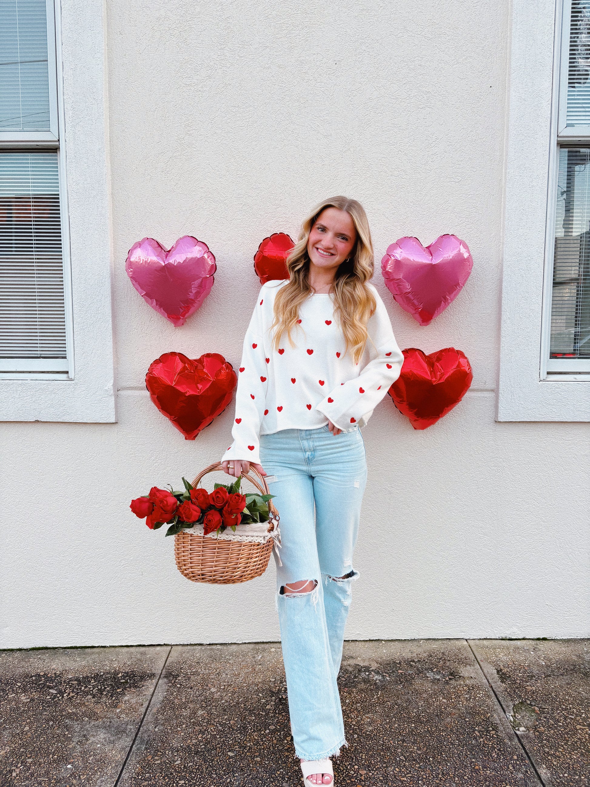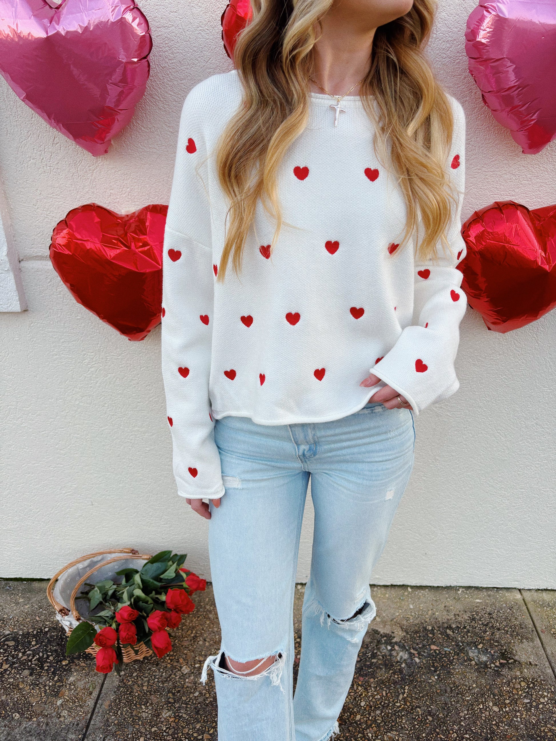 The sweater is a wide neck style. It is a thick, soft knit material, and it runs true to size. The model is wearing a XS/S.
