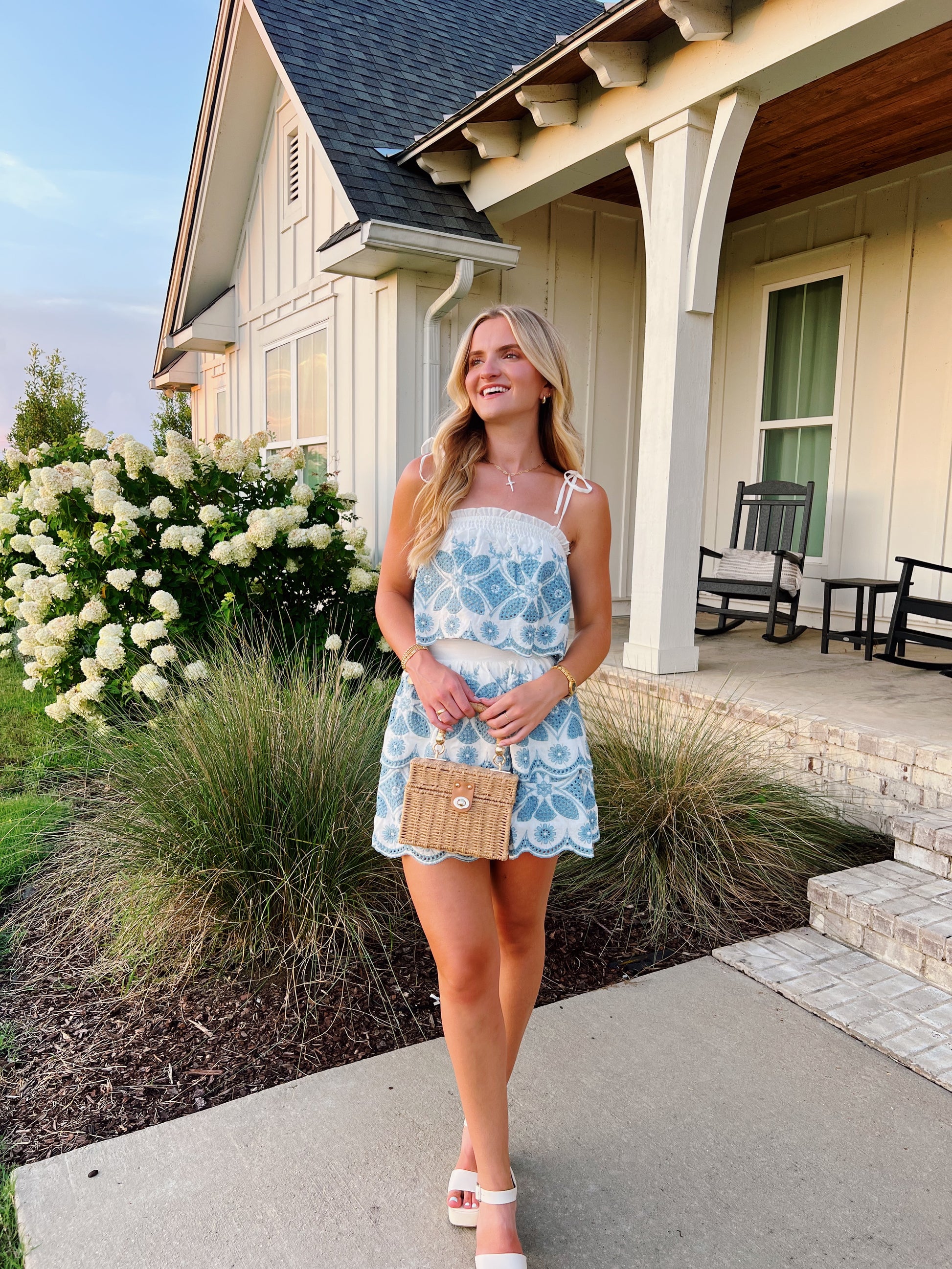 How stunning is this embroidered set?! It runs true to size, the model is 5'6 wearing a small for reference.