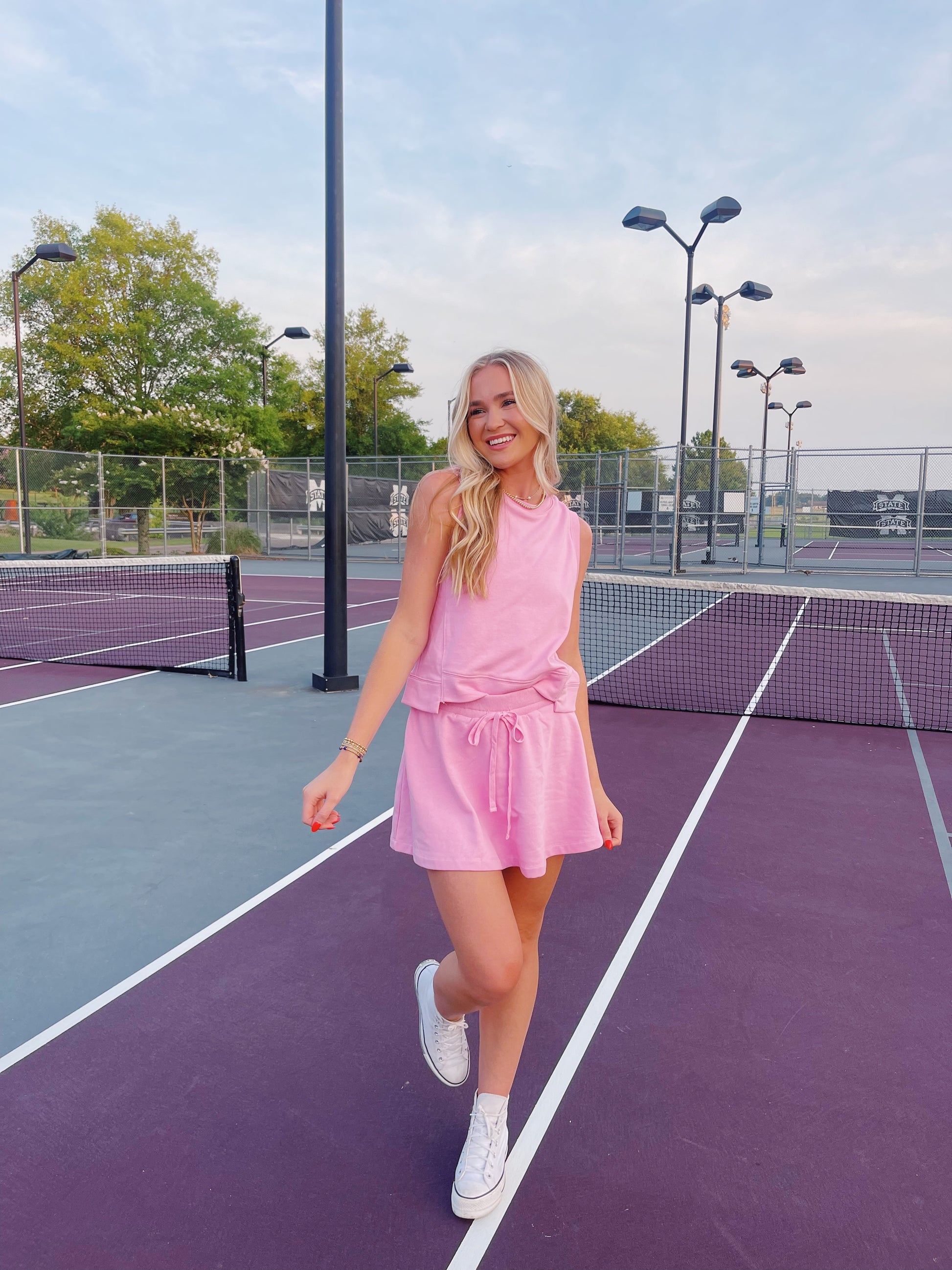 This adorable set runs true to size with a looser fit. The skirt runs longer which makes it perfect for all of our taller girlies! Kordelia is 5'9 wearing a small for reference.