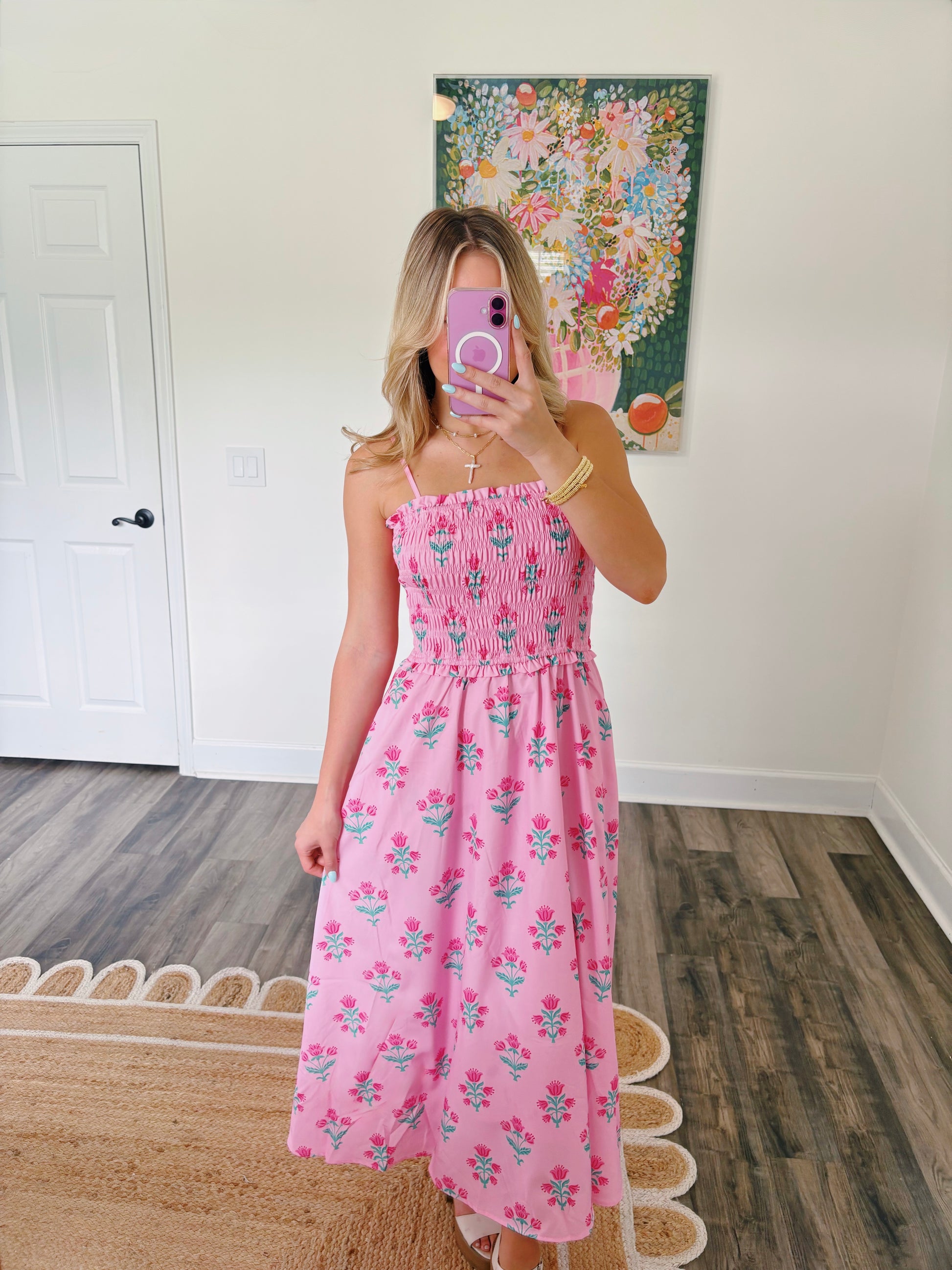 This dress runs true to size. The model is 5'3 wearing a small for reference.
