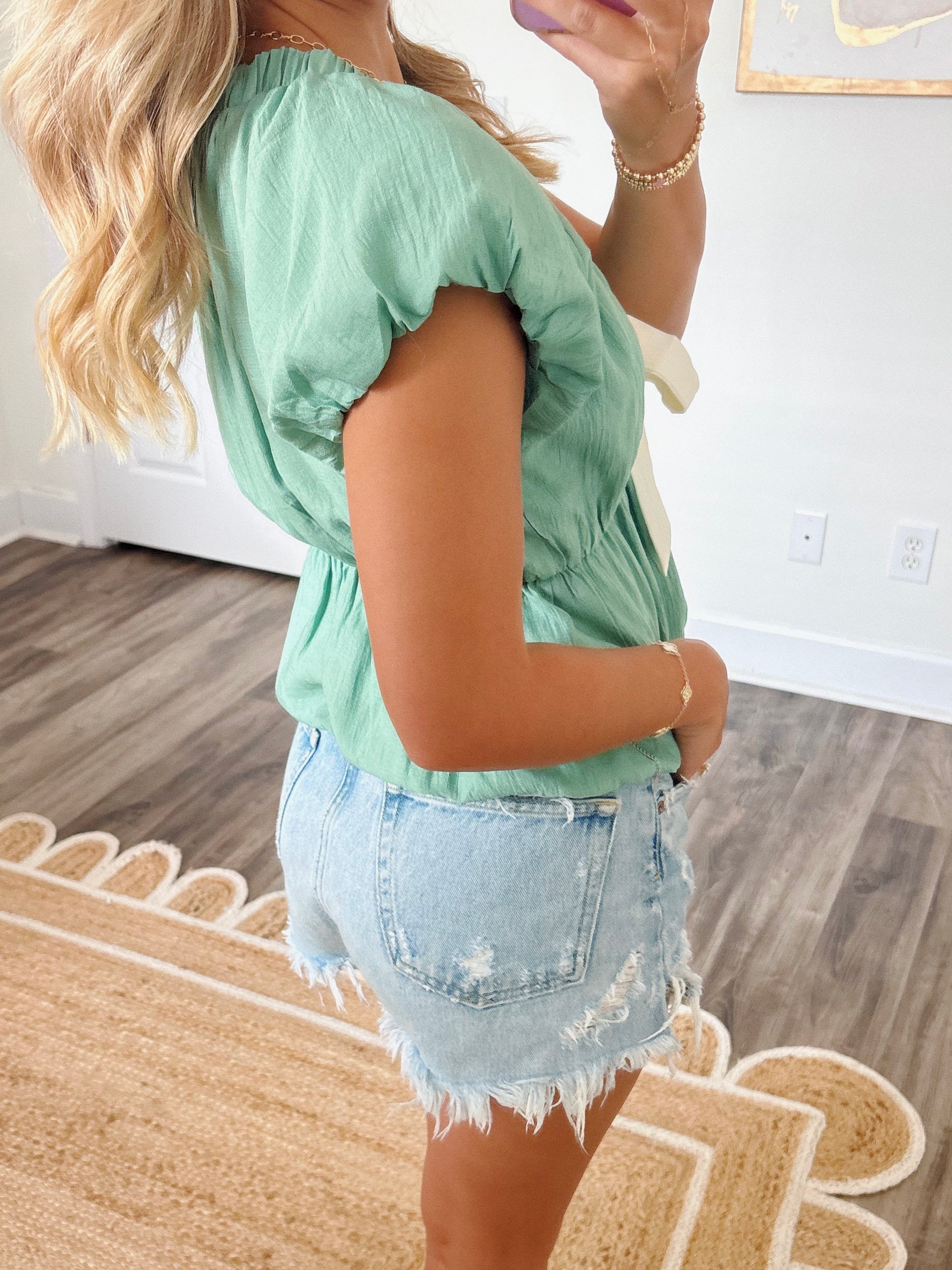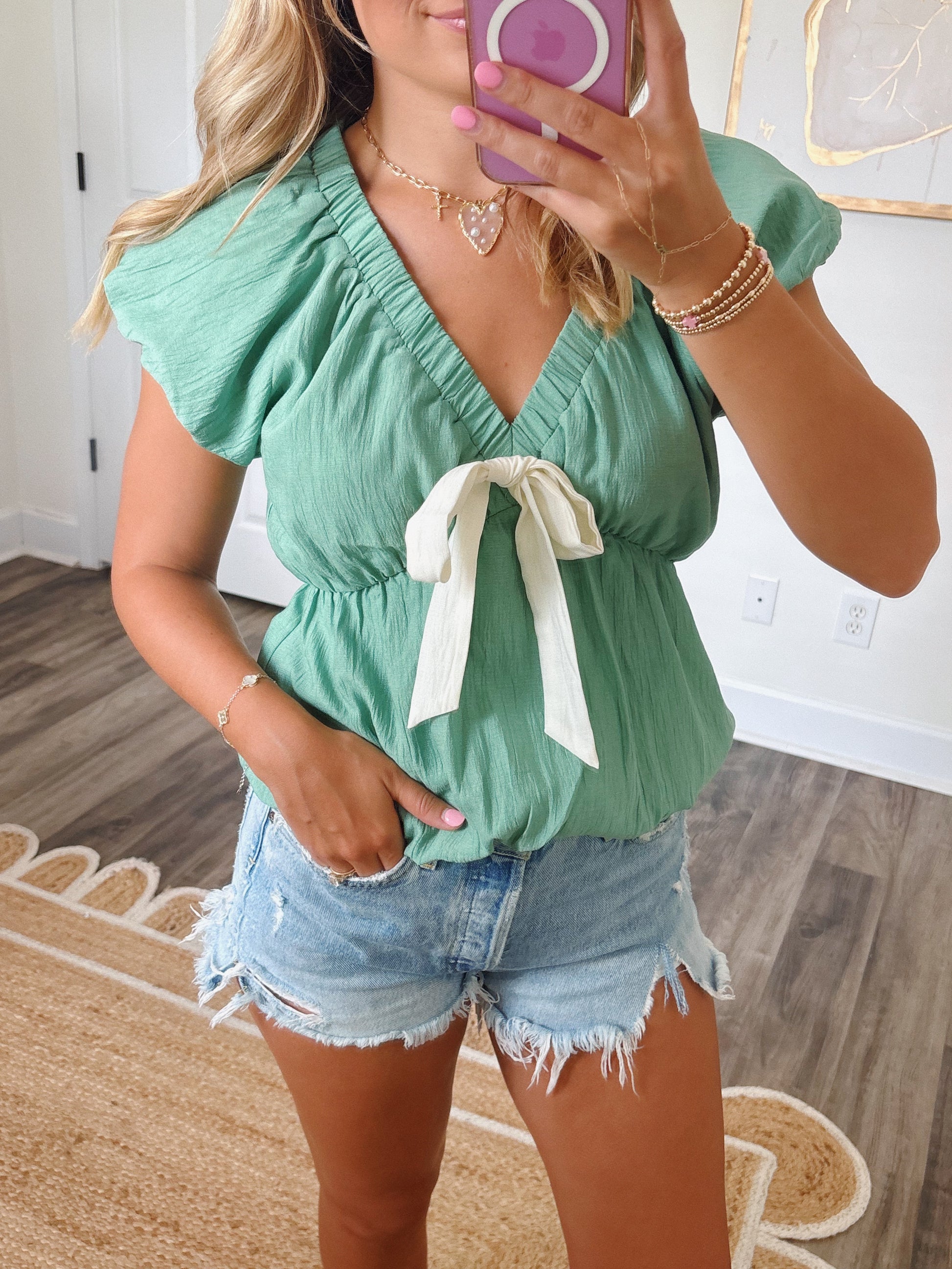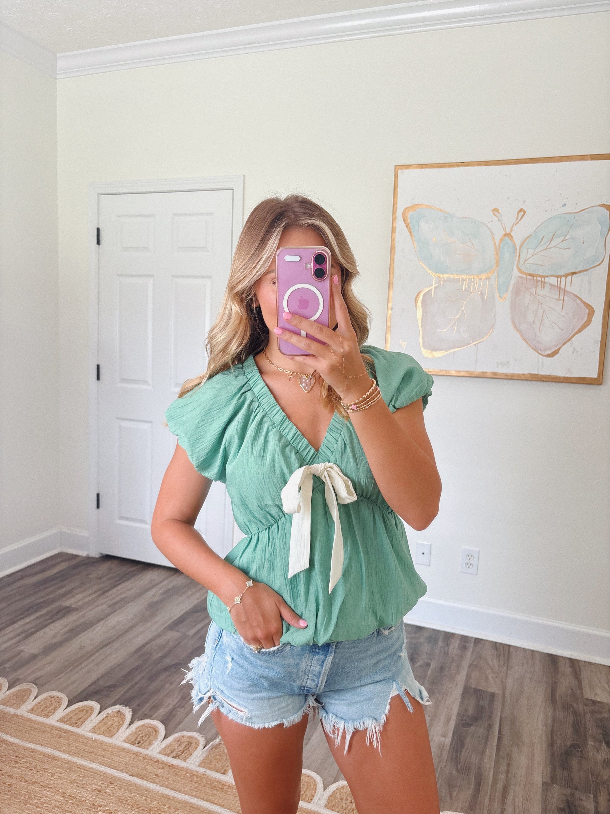 This top is perfect for the transition into fall! Dress it up or down with jeans and sneakers or heels! It runs true to size, and Hallie is wearing a small.
