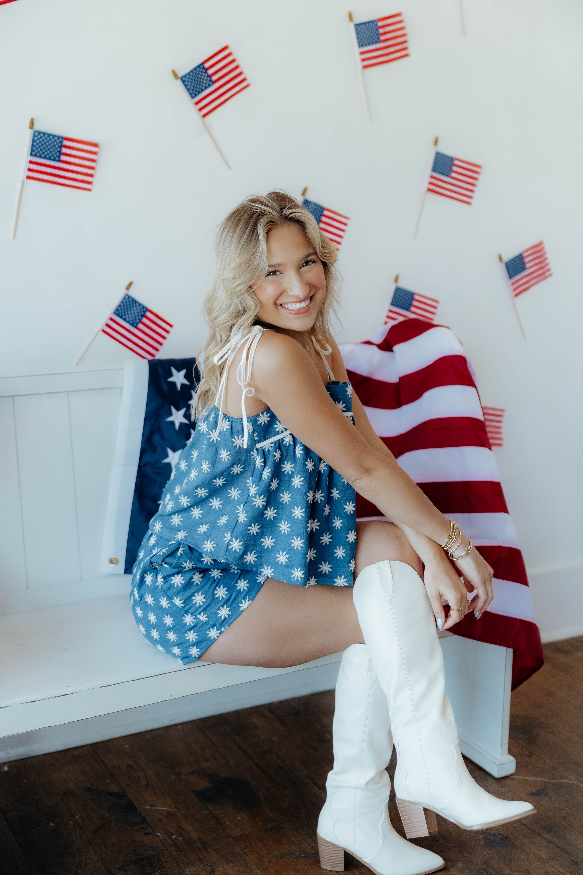 How cute is this embroidered set!! Perfect for 4th of July, concerts, game days, etc. The shorts have pockets, and it runs true to size. Hallie is wearing a small.