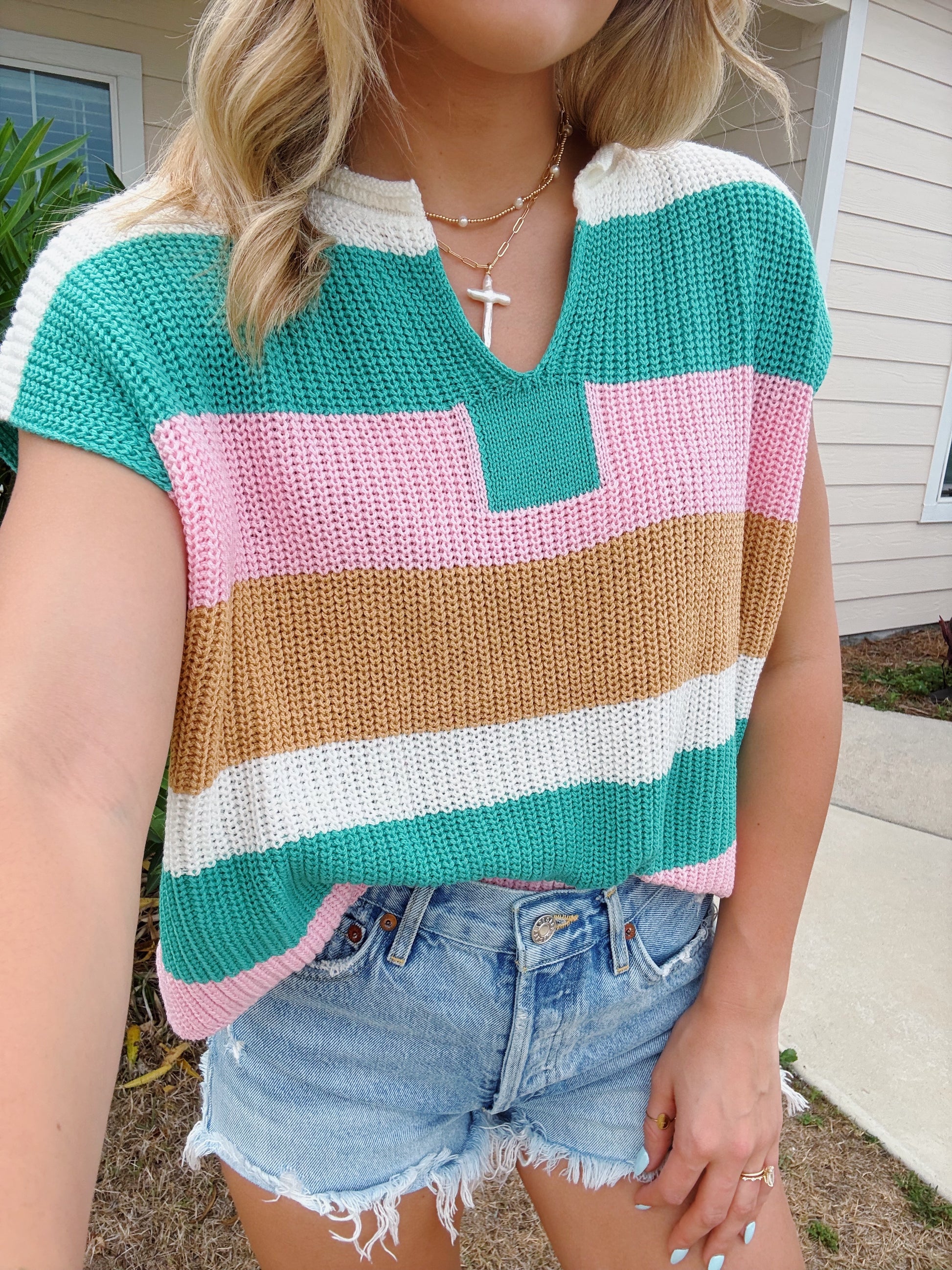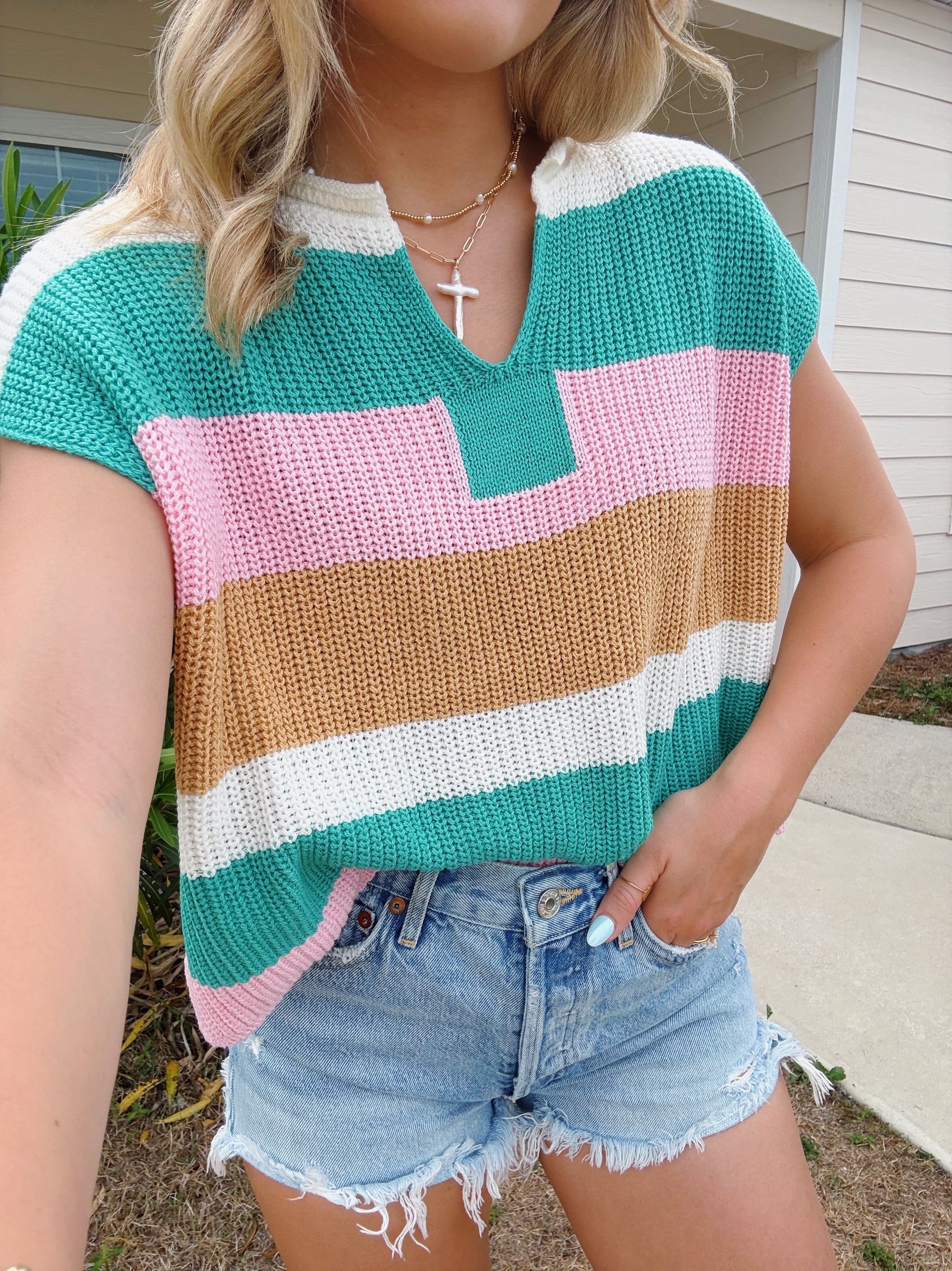 The perfect summer basic top! It runs true to size. The model is wearing a small for reference.