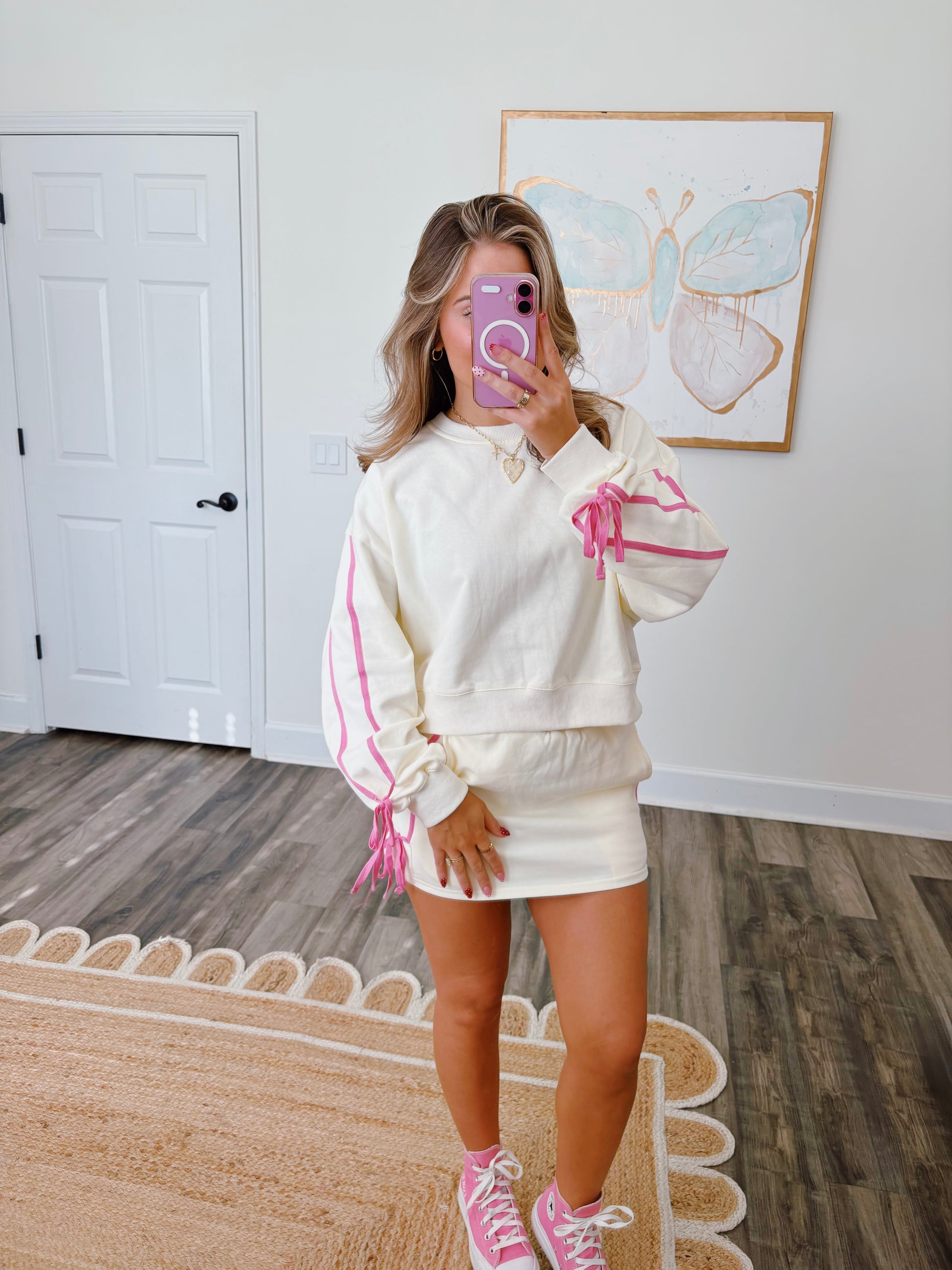 This set runs more fitted! We recommend sizing up if you are in between! Hallie is 5'3 and wearing a small. The skirt has built in shorts underneath.