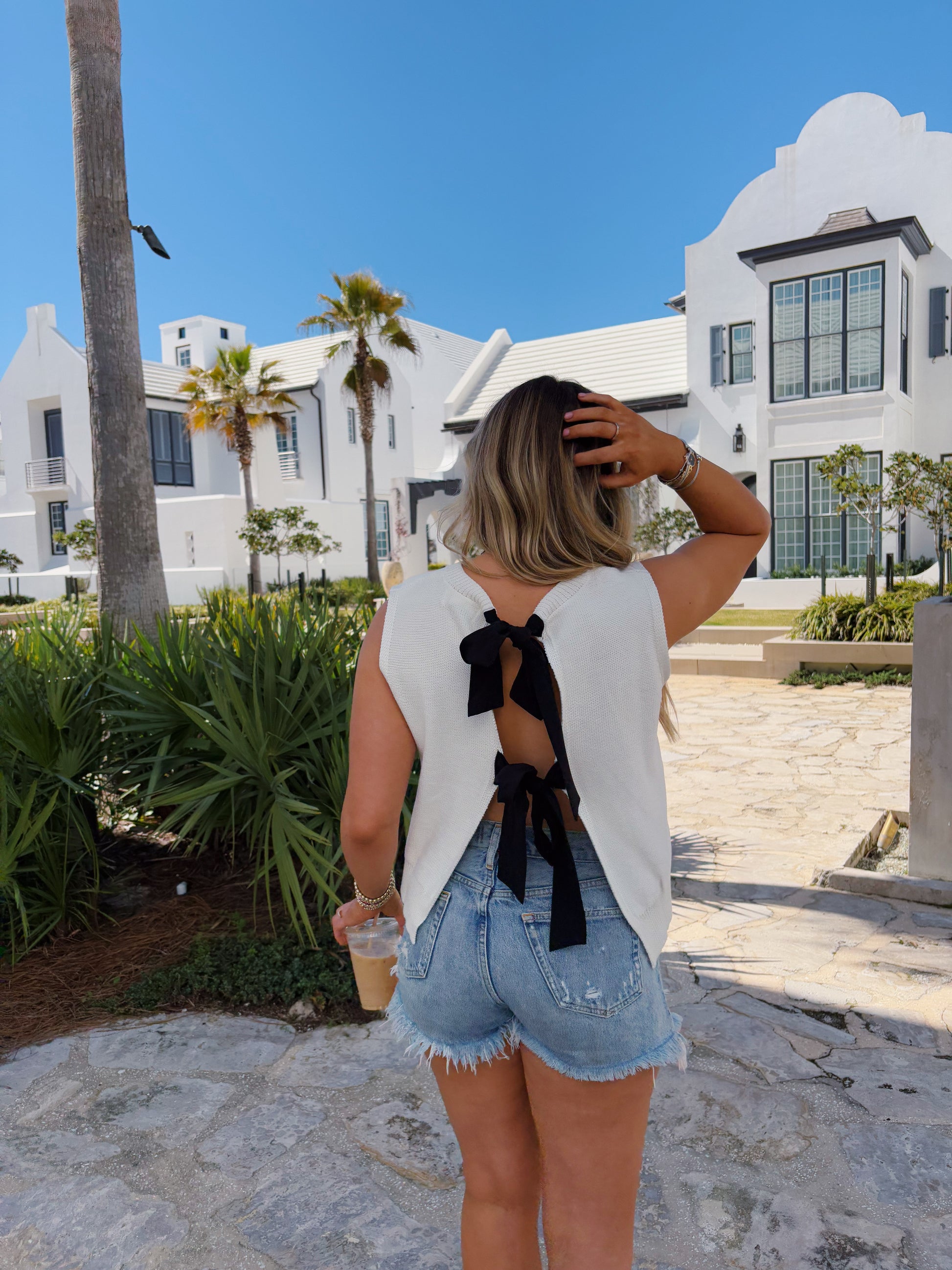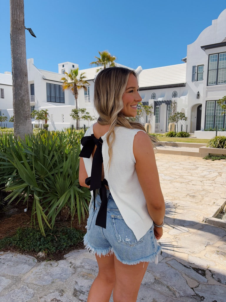 How precious is this little top! Pair it with jeans or shorts this summer! It runs true to size. The model is wearing a size small.