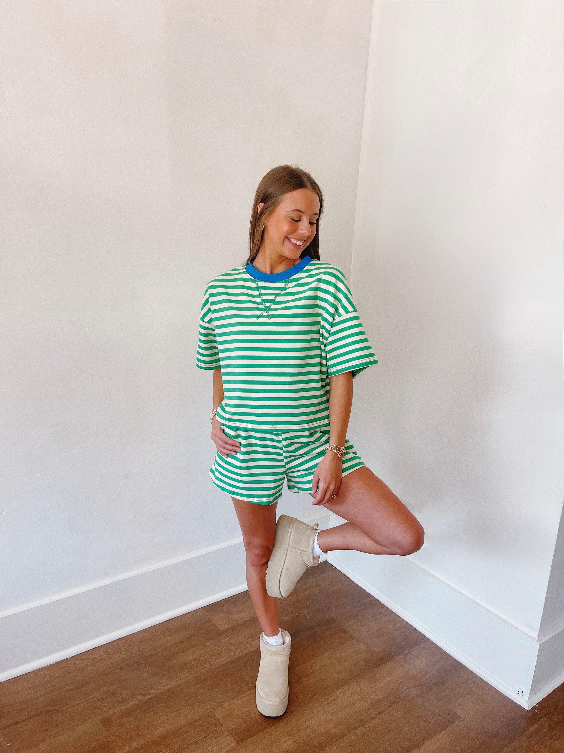We love these colors for fall! This set runs true to size. The model is wearing a small!