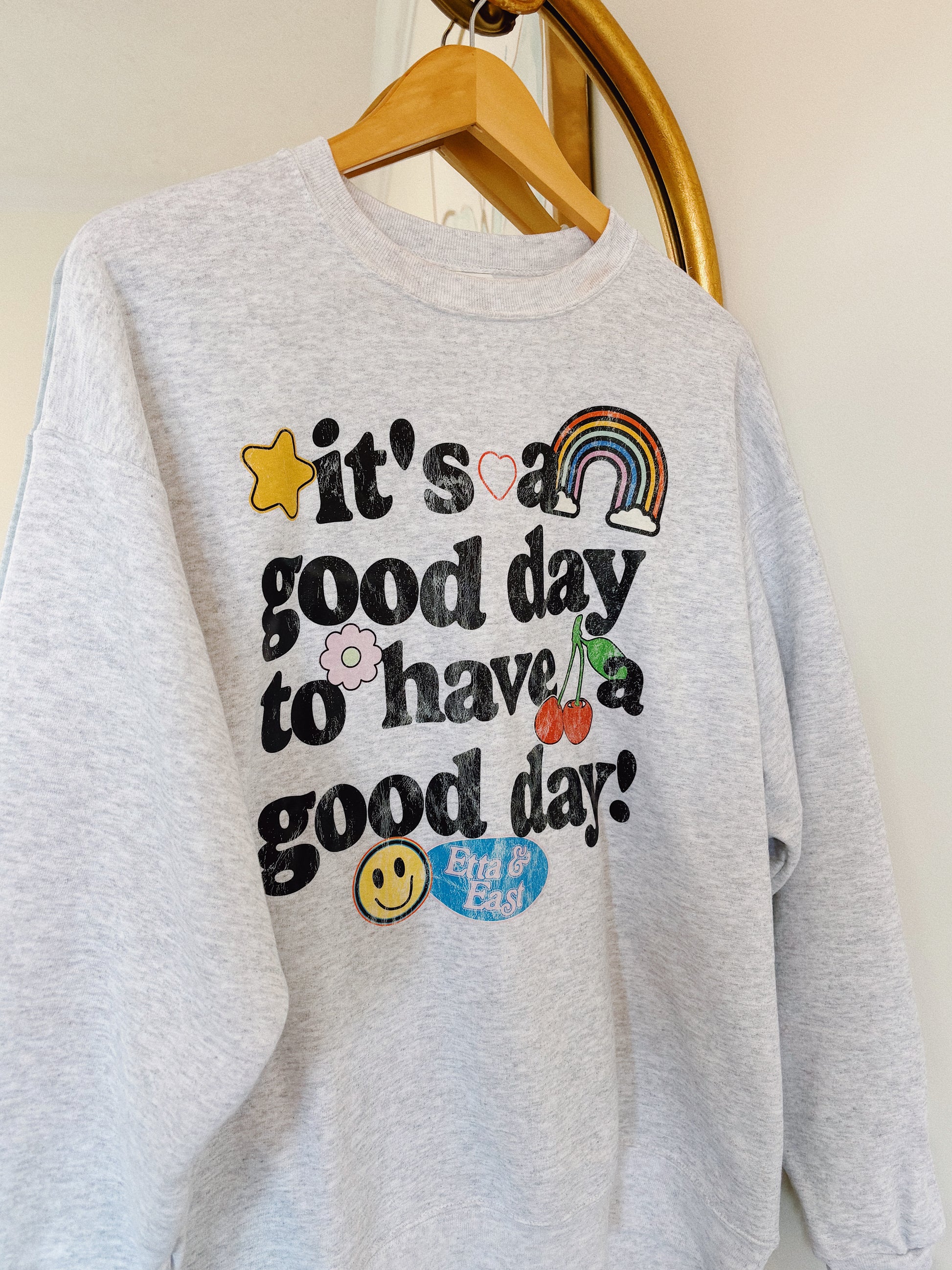How fun is this crewneck! Size up for an oversized fit, the model is wearing a large for reference. Unisex fit, Hanes sweatshirt, 50% cotton/50% polyester.