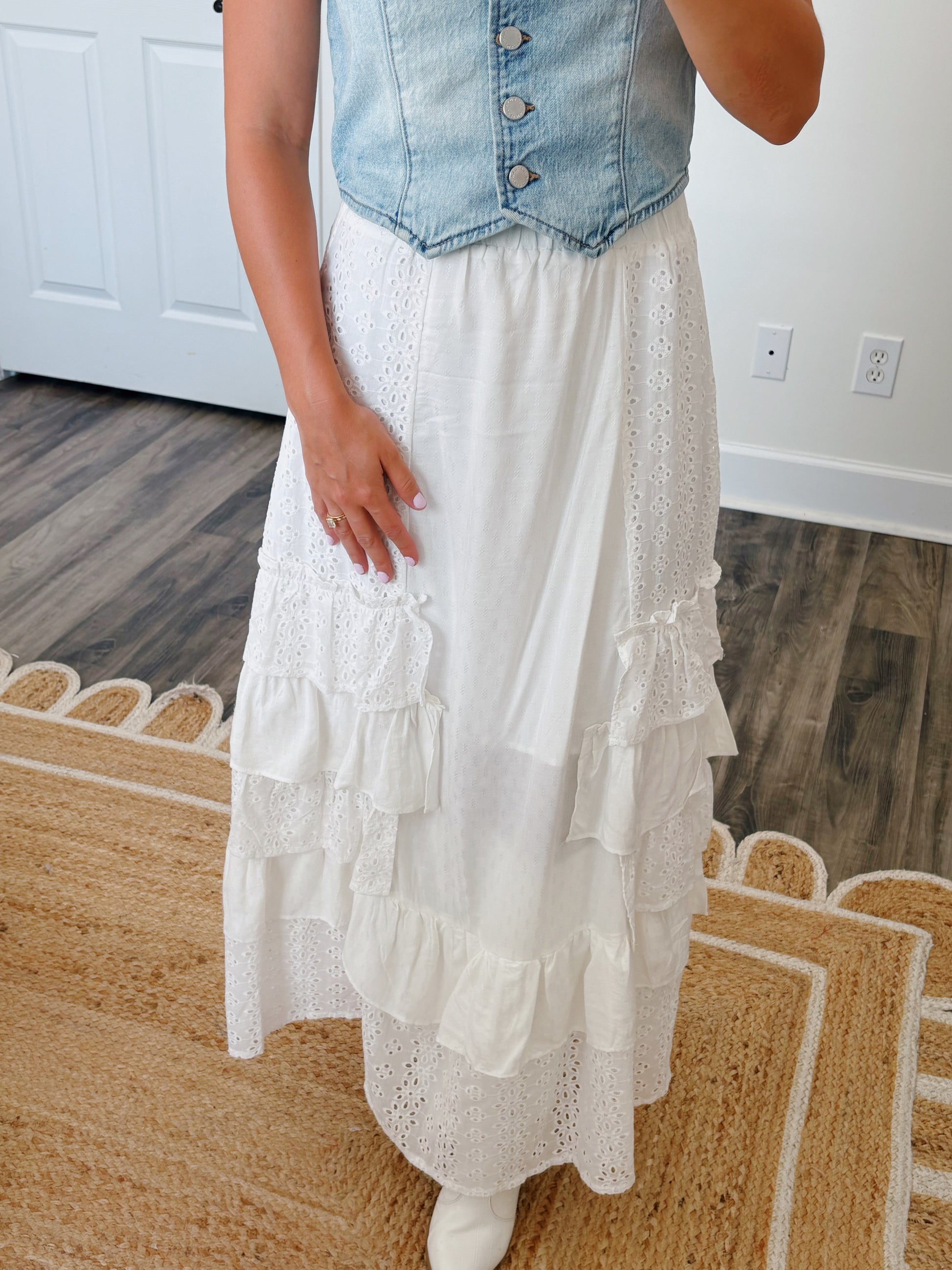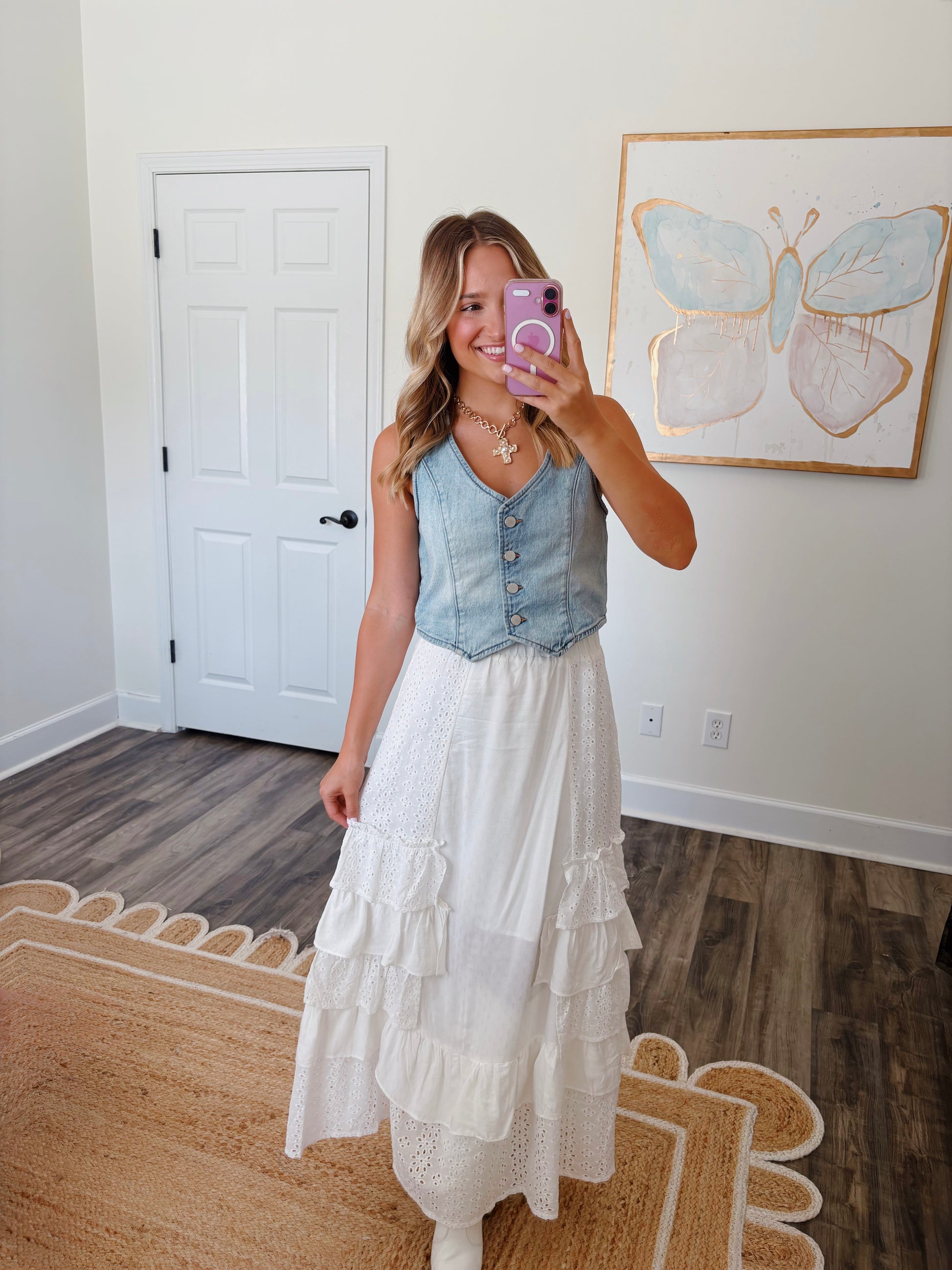 This maxi is a staple for your closet!! We love it paired with the Light Wash Denim Vest. Hallie is 5'3 and wearing a small.